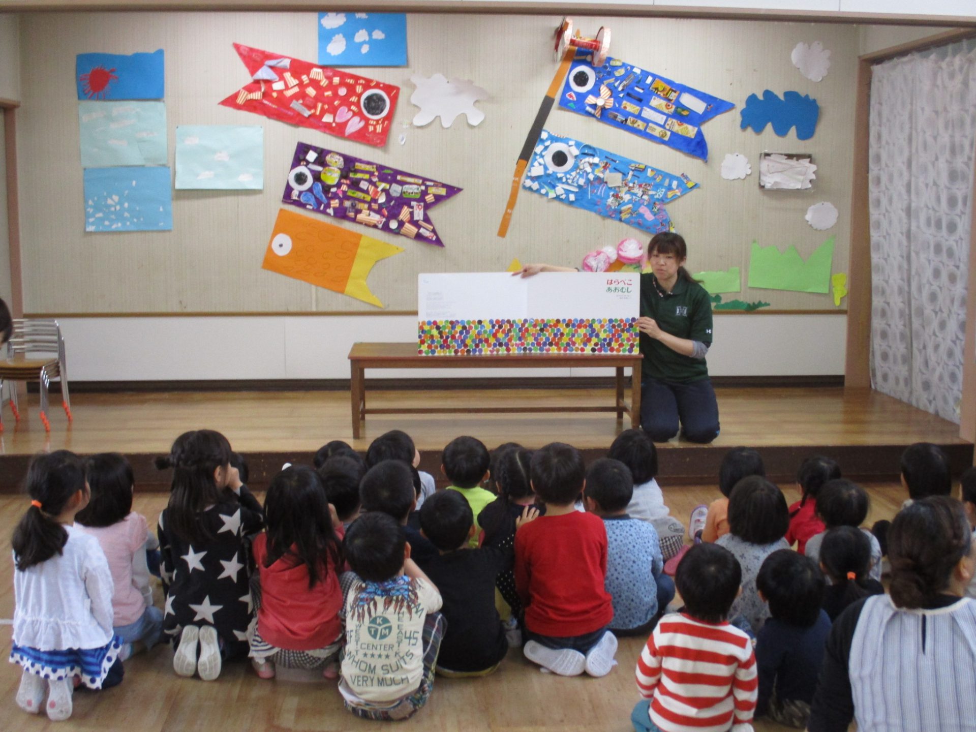 初めに、「はらぺこあおむし」お話を聞いて、「ちょうちょきれいだなぁ」「早く捕まえにいきたい!」とちょうちょへの気持ちが膨らんでいく子ども達。