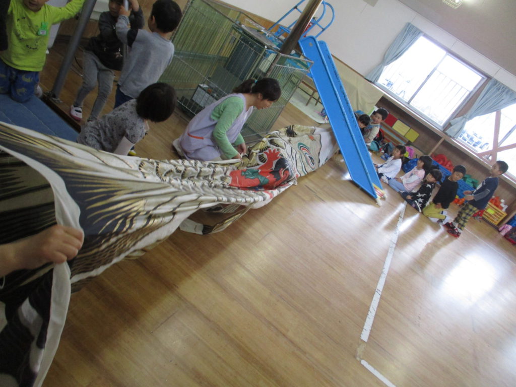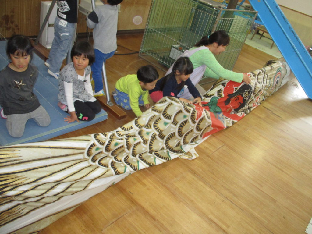 「鯉のぼりが動いているみたいだね!!」「ほんとだ生きてるみたい!」「お腹がくねくねしてるよ〜」