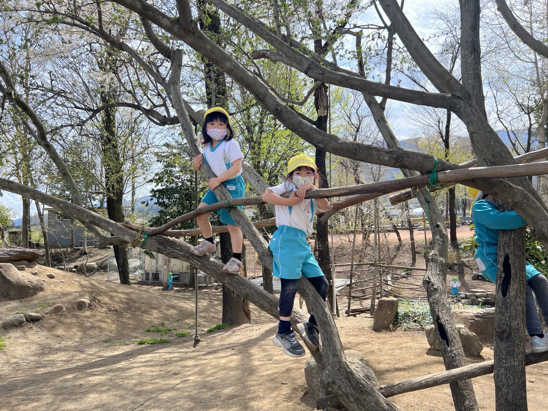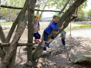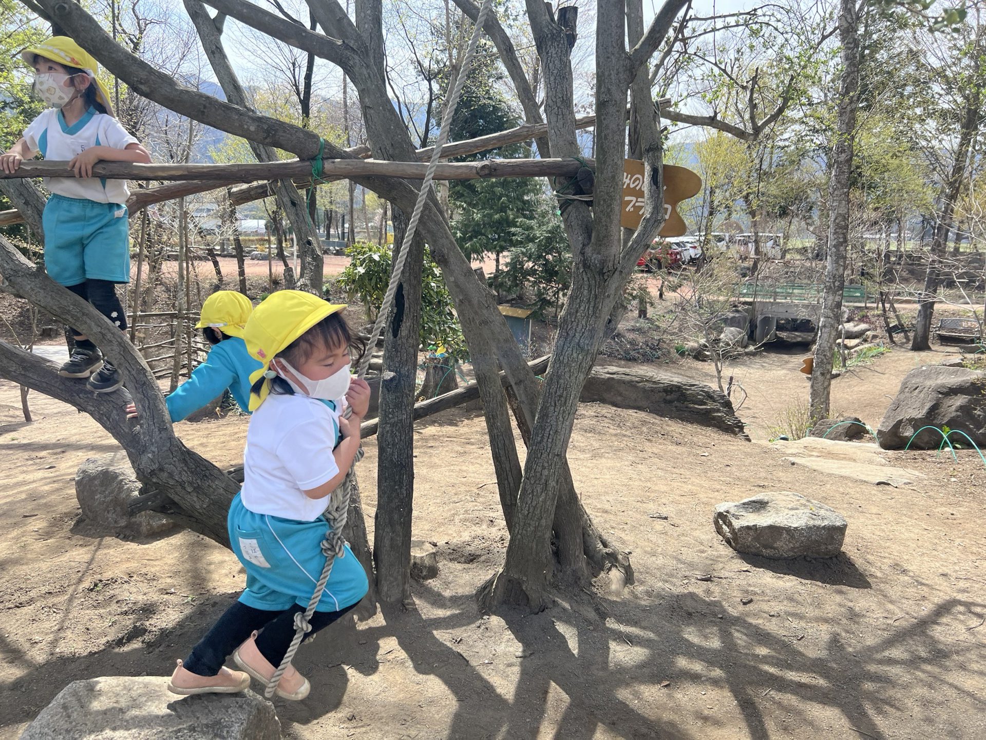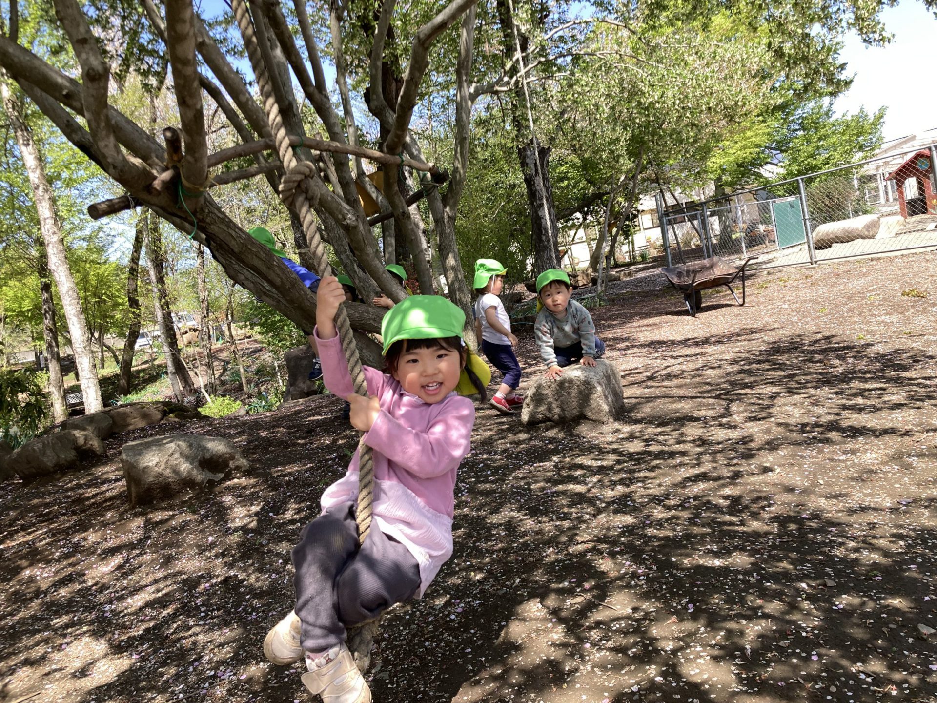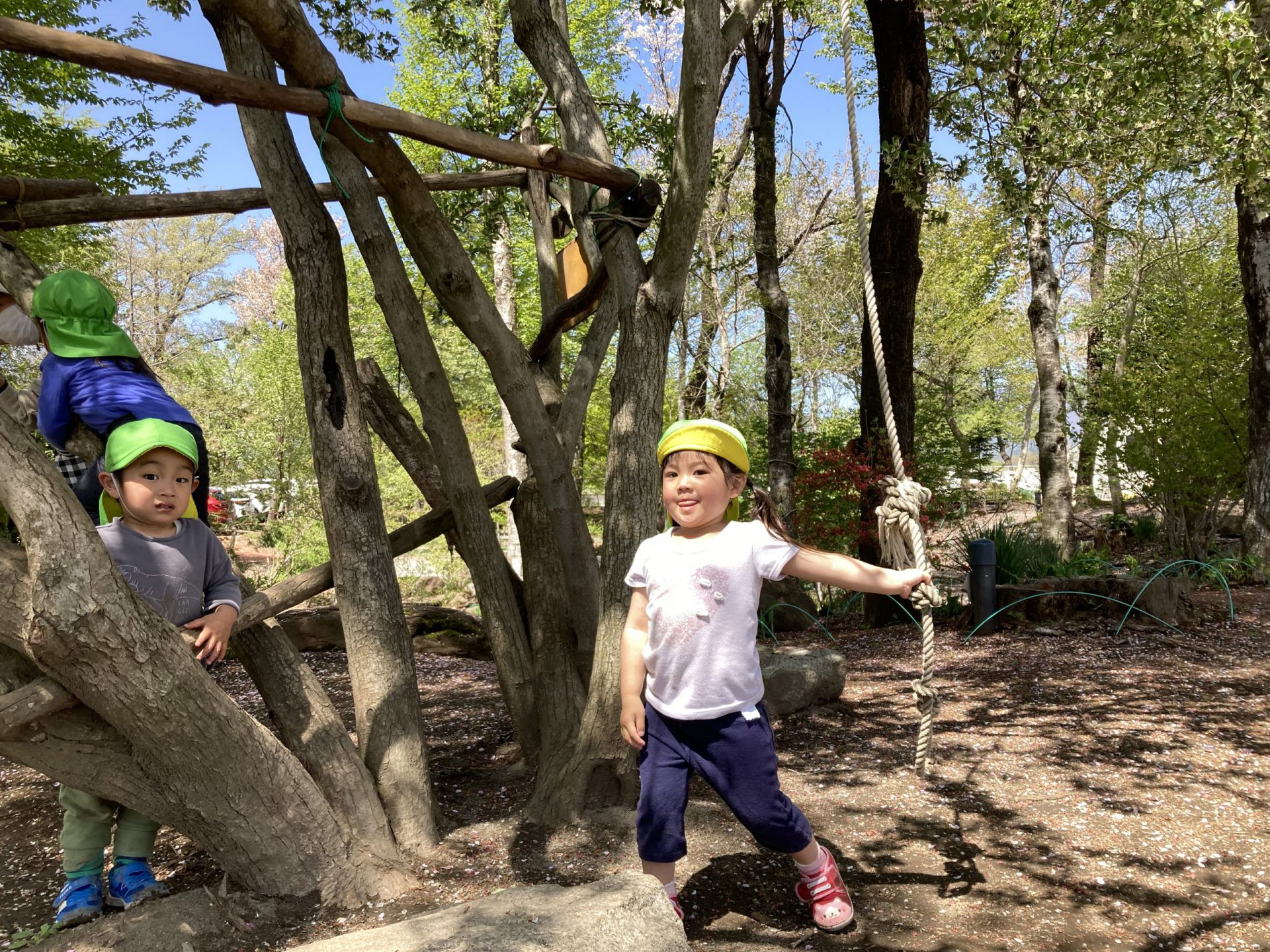 木に登ったり、ターザンロープで遊んだり一人ひとりが好きな遊びを見つけ楽しんでいます。