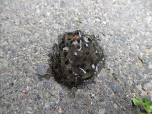 道路の真ん中なのにカエルのたまご