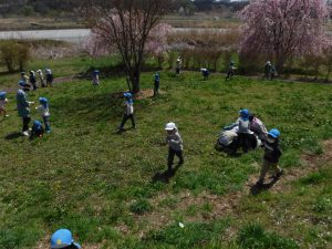 子ども達は、思い思いに身近な春を感じながら楽しんで遊び「また行きたい!」「今日はラベンダー公園行く?」と楽しみにして何度も出かけ、桜やヒメオドリコソウ、モンシロチョウなどなど身近な春にたくさん触れることができました。自然の中に出かけることで園の中ではおとなしかった子が活発に活動し、声が聞こえたり、「先生こっち!」と保育士を誘ったことのなかった子が誘ってくれたりと心と体が解放され遊ぶ姿がありました。自然の中では不思議と子どもも保育士もいい顔になっています。