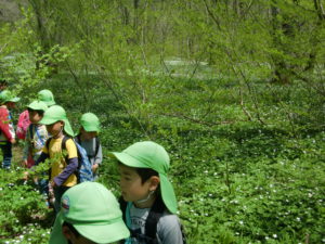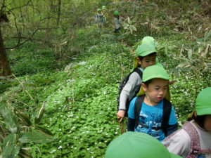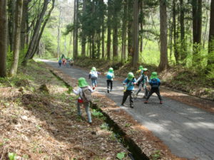 だんだんと列がなくなり、自由に子どもたちは歩き始め・・