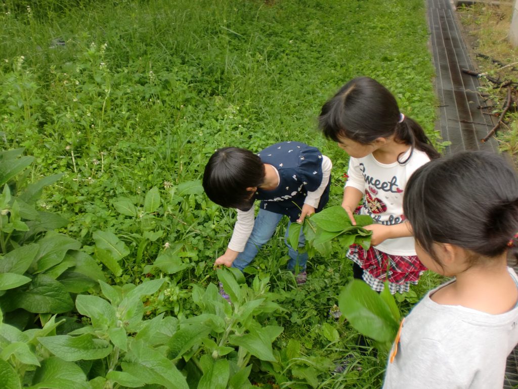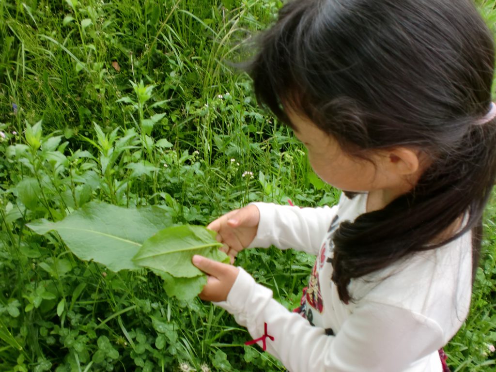 まずは葉っぱが必要だということになり、早速採りに出かけました。