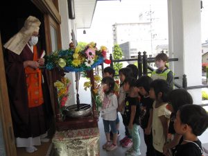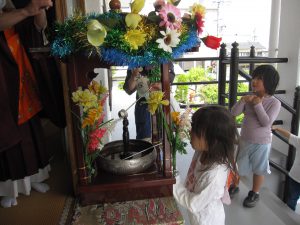「お花まつりはお釈迦様のお生まれになった日です」と教えていただいた後、