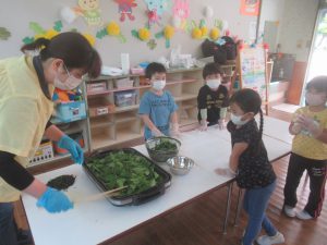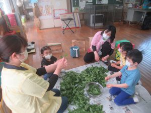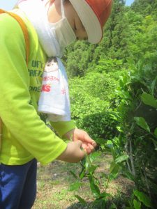 地域の方が「お茶摘みに来ませんか?」と声をかけてくださり、子どもたちとお茶摘みに行きました。