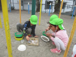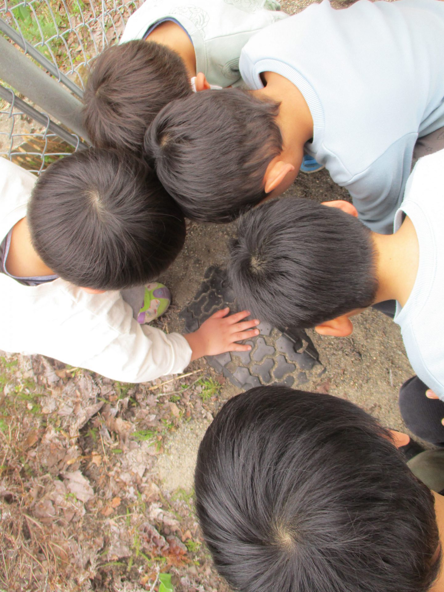 最後まで見ていた友だちは、「アリさんちゃんと巣に戻って行ったよ!」と報告してくれました。「ちゃんとお家わかっててよかった!」と優しい子どもたちです。