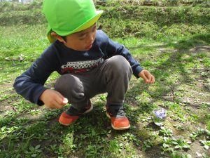 保育園で一番のお兄さんお姉さんになった子どもたち。興味があるものにとことん集中して見たり聞いたり捕まえたり掘ったり…
