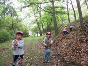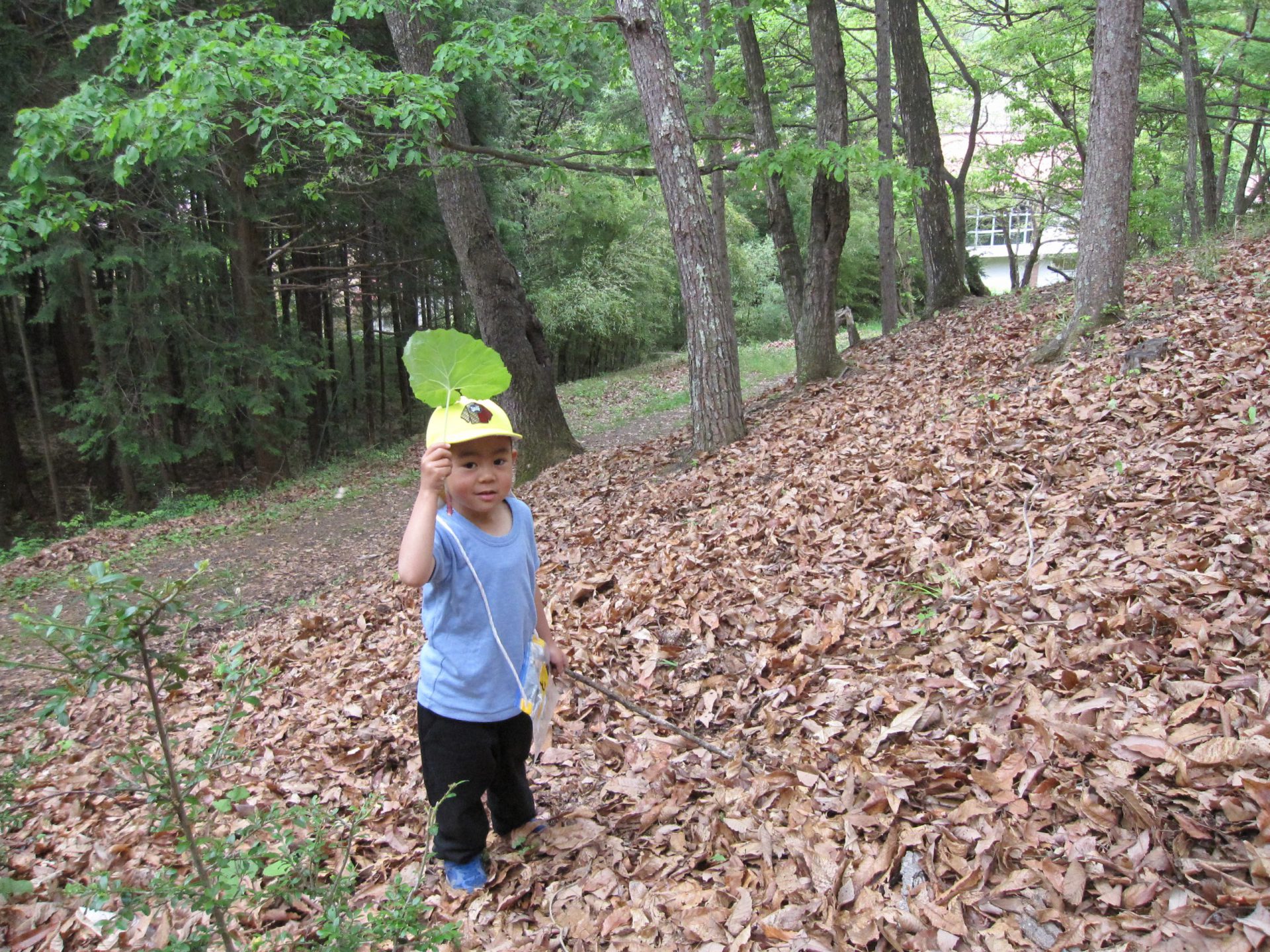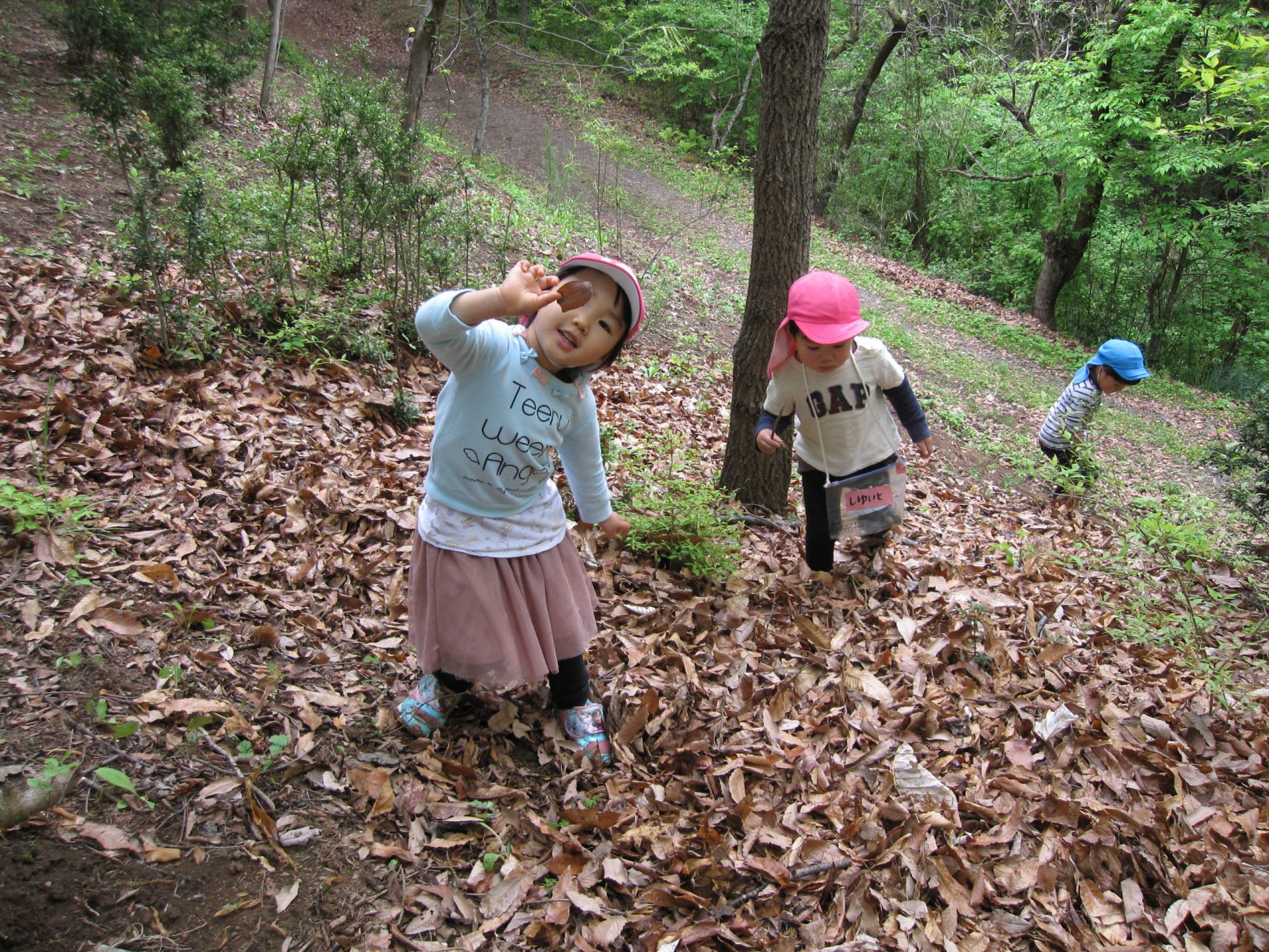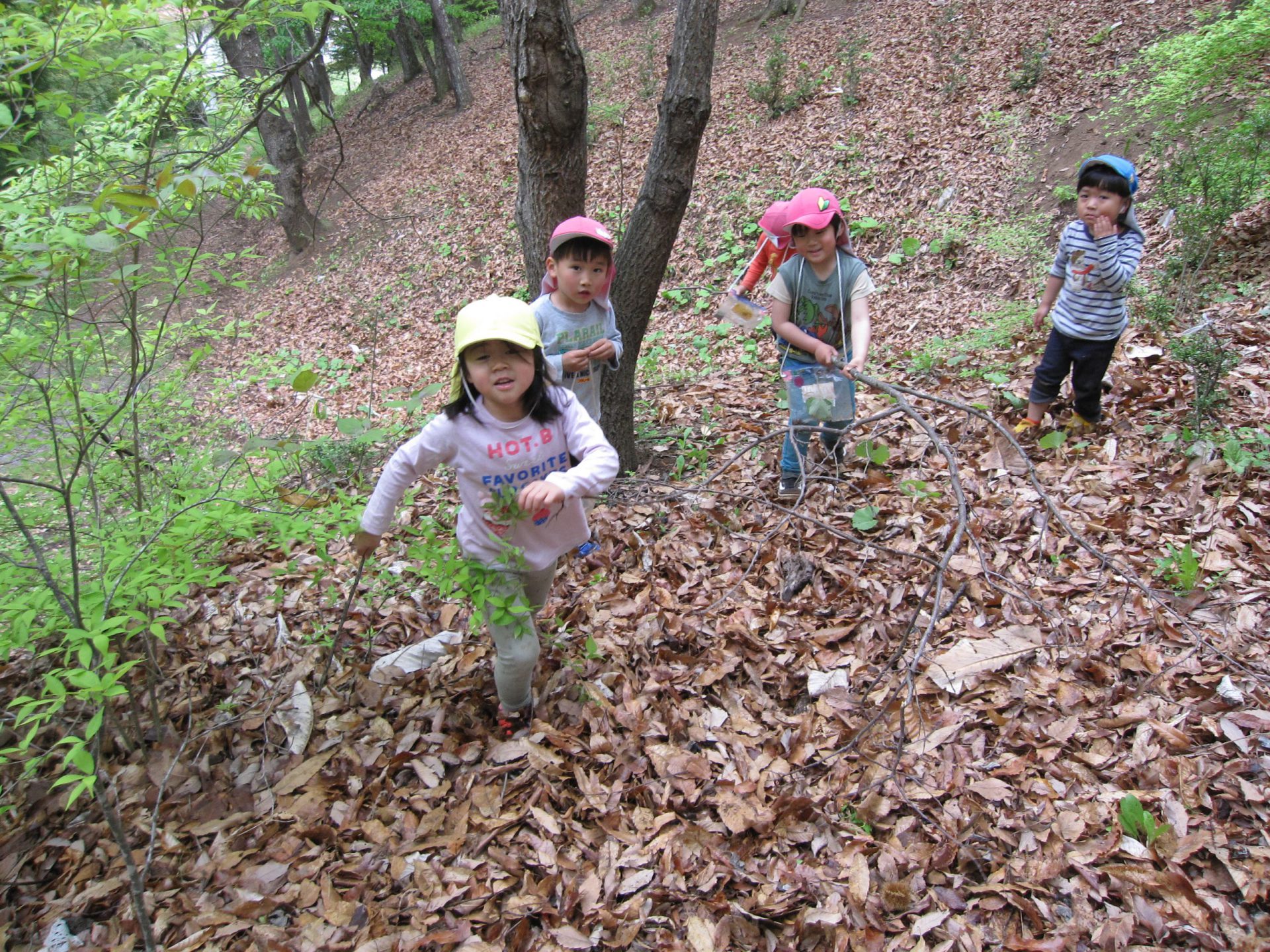 5月のある日、雨上がりに保育園のすぐ近くの裏山へ、みんなでお散歩。