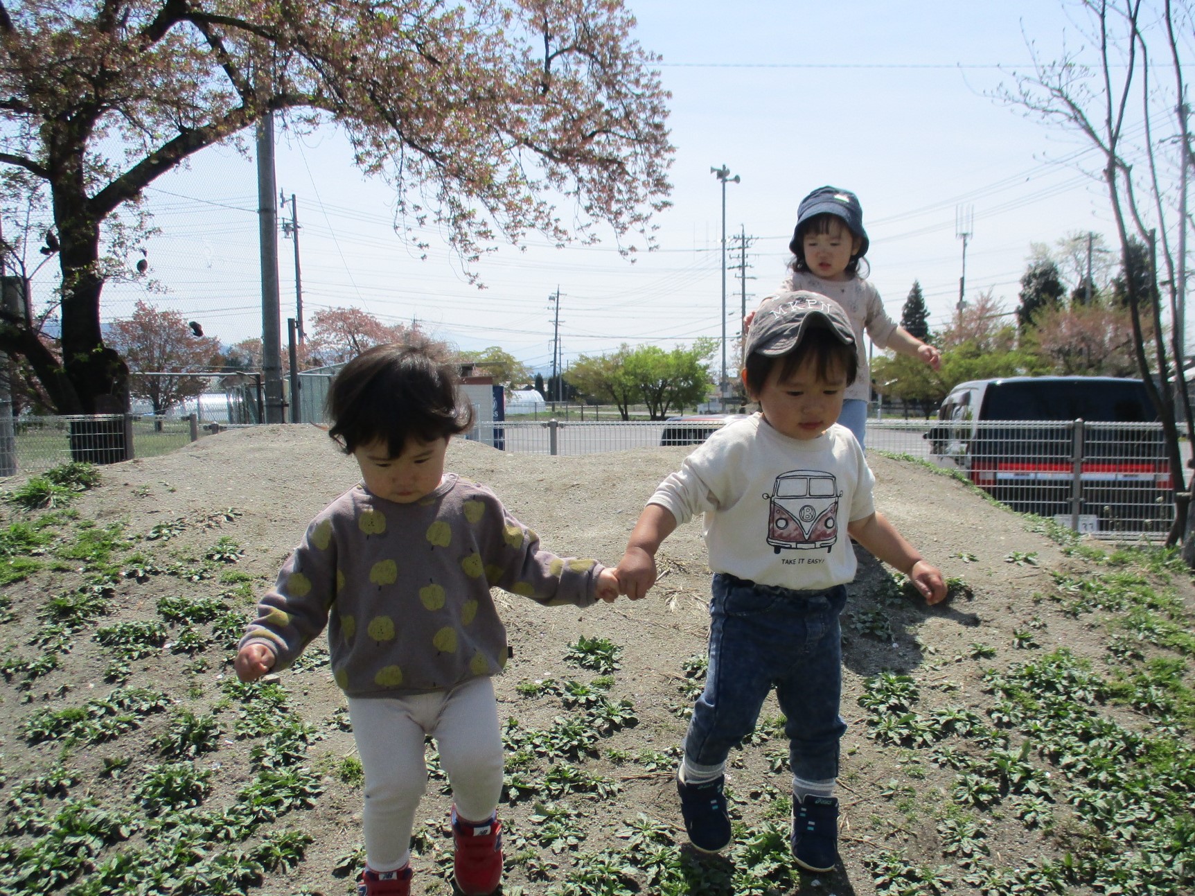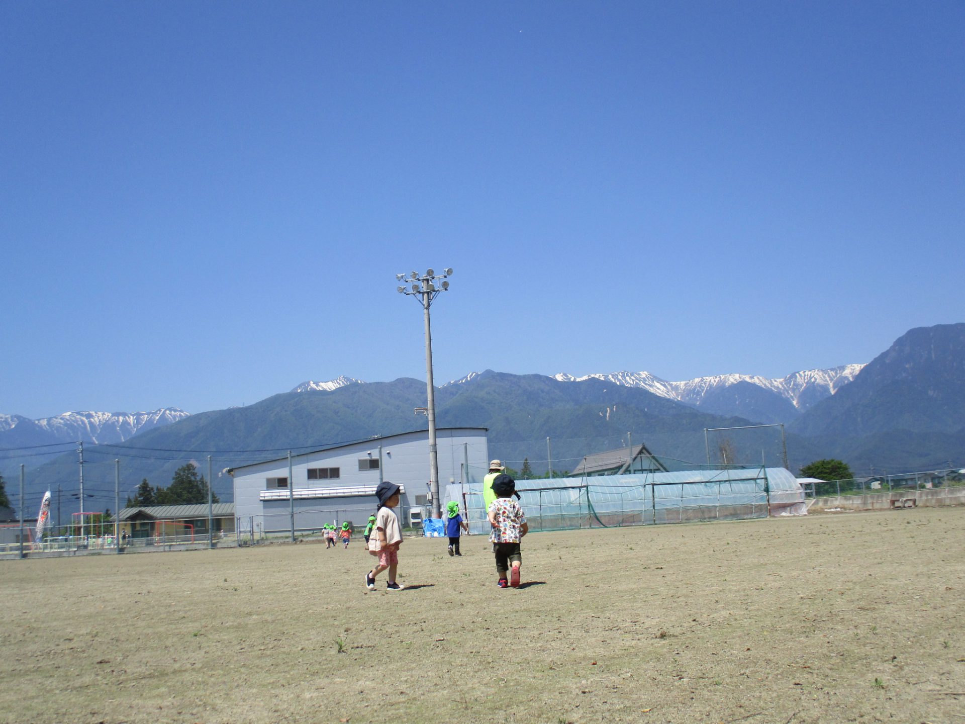 今日はお散歩日和!! 園の隣のグランドへ「しゅっぱーつ!!」