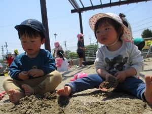 今後も様々な活動の中で色々な感触にふれ、自然に親しむ中で思いきり遊んで子どもたちにとって楽しいことがたくさんできるように工夫していきたいと思っています。