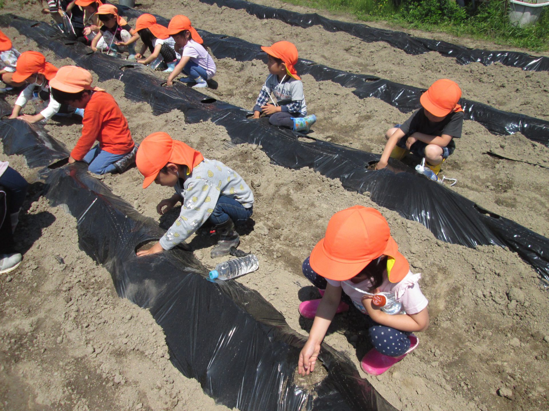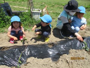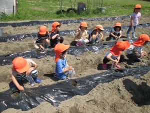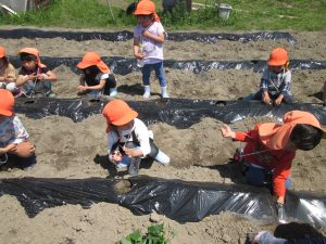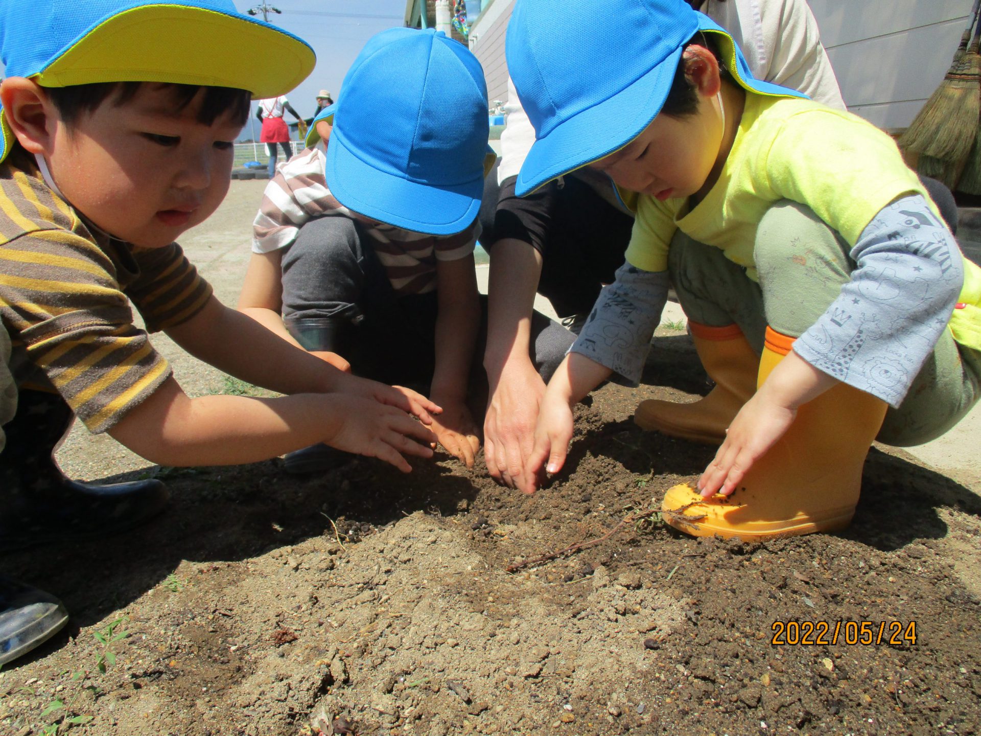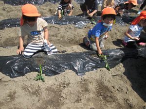 「はじめは穴を掘って、おいもさんを寝かして、お布団優しくかけるんだよ」