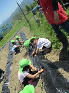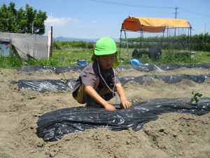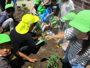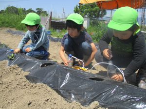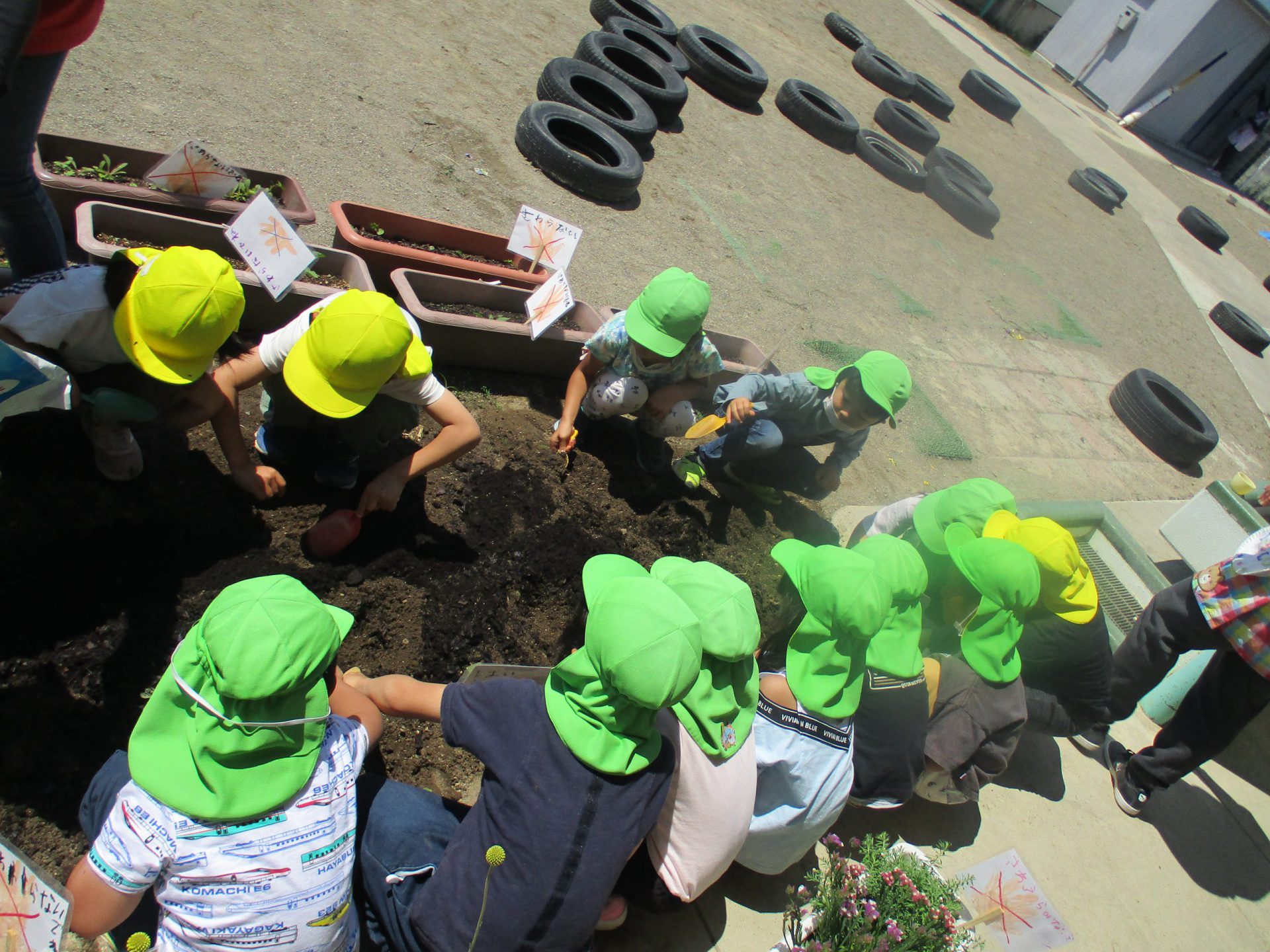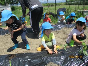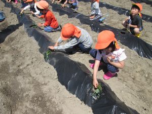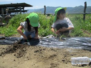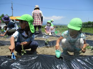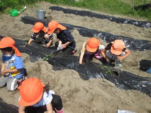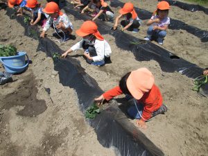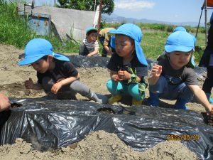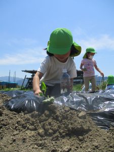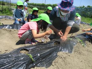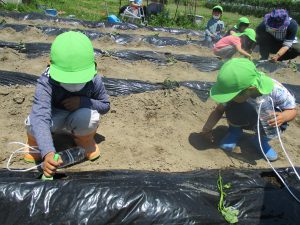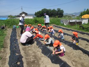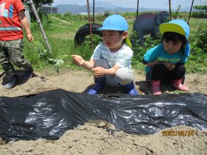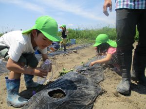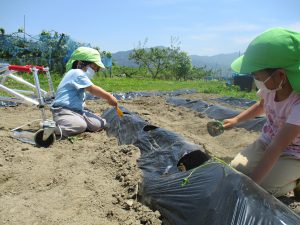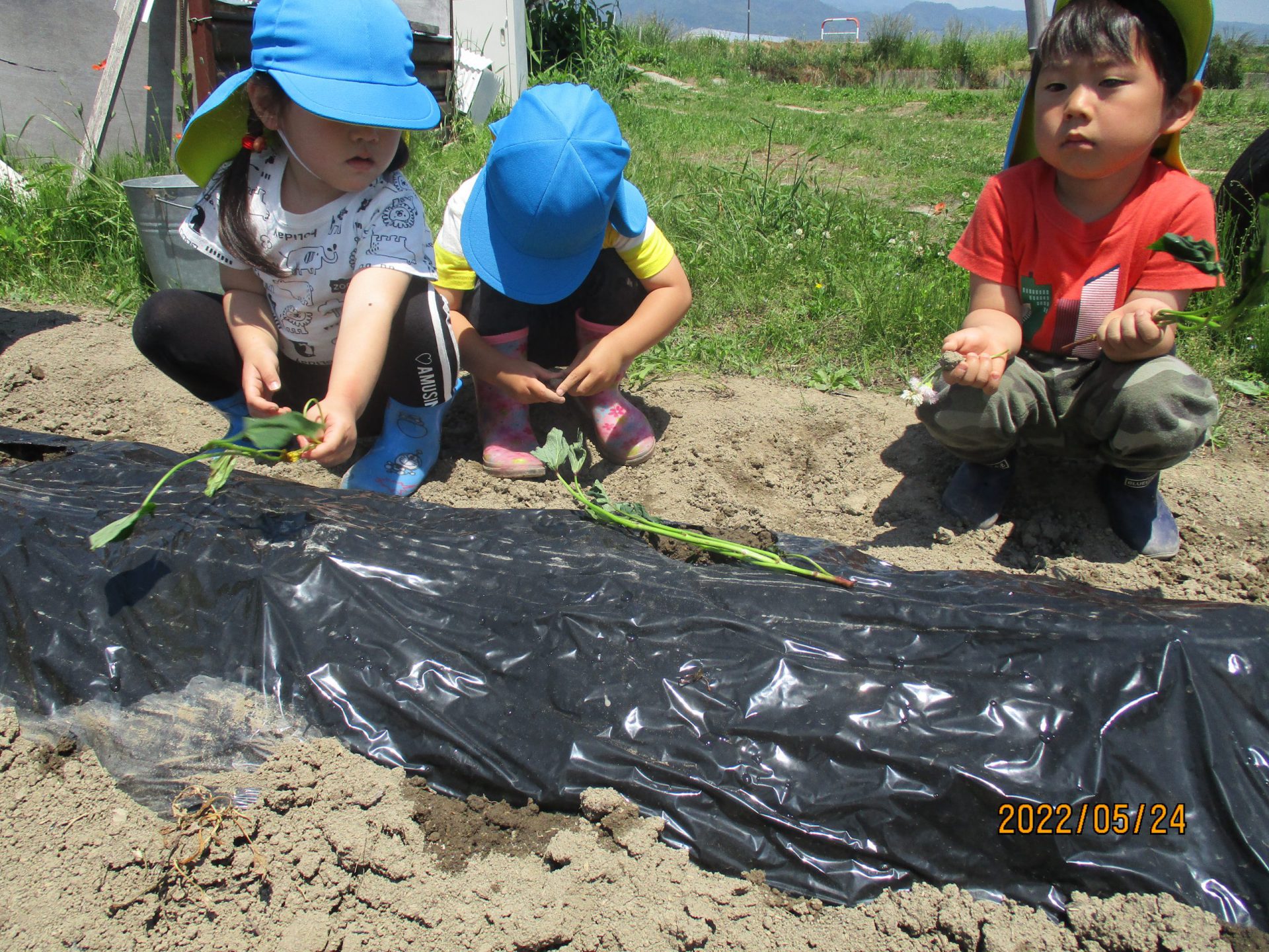「はじめは穴を掘って、おいもさんを寝かして、お布団優しくかけるんだよ」