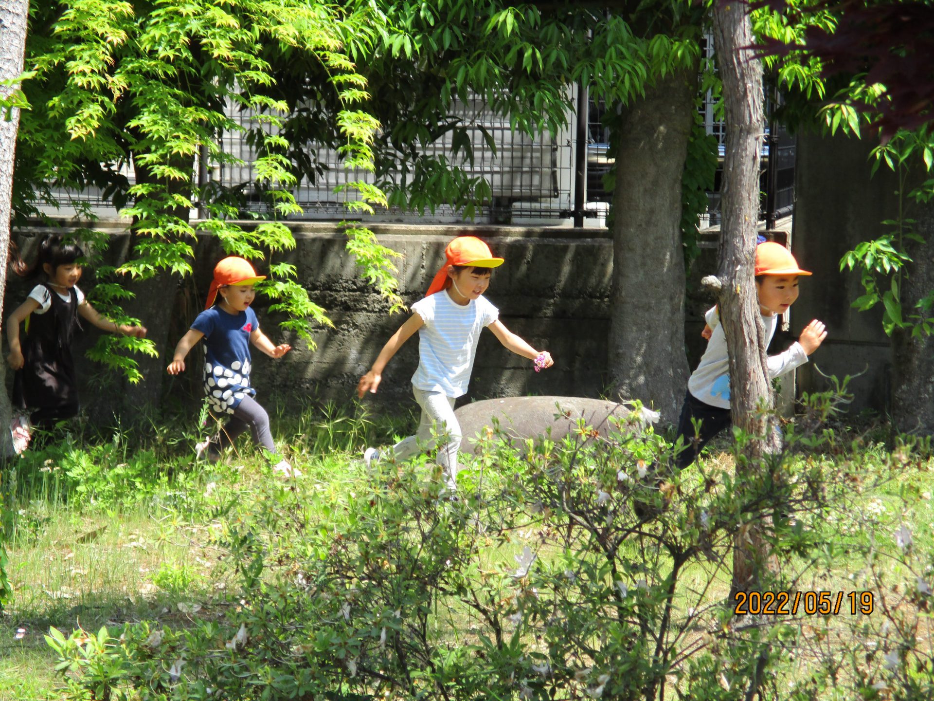 みんなで散歩に出かけ、近隣の施設のお庭に到着。