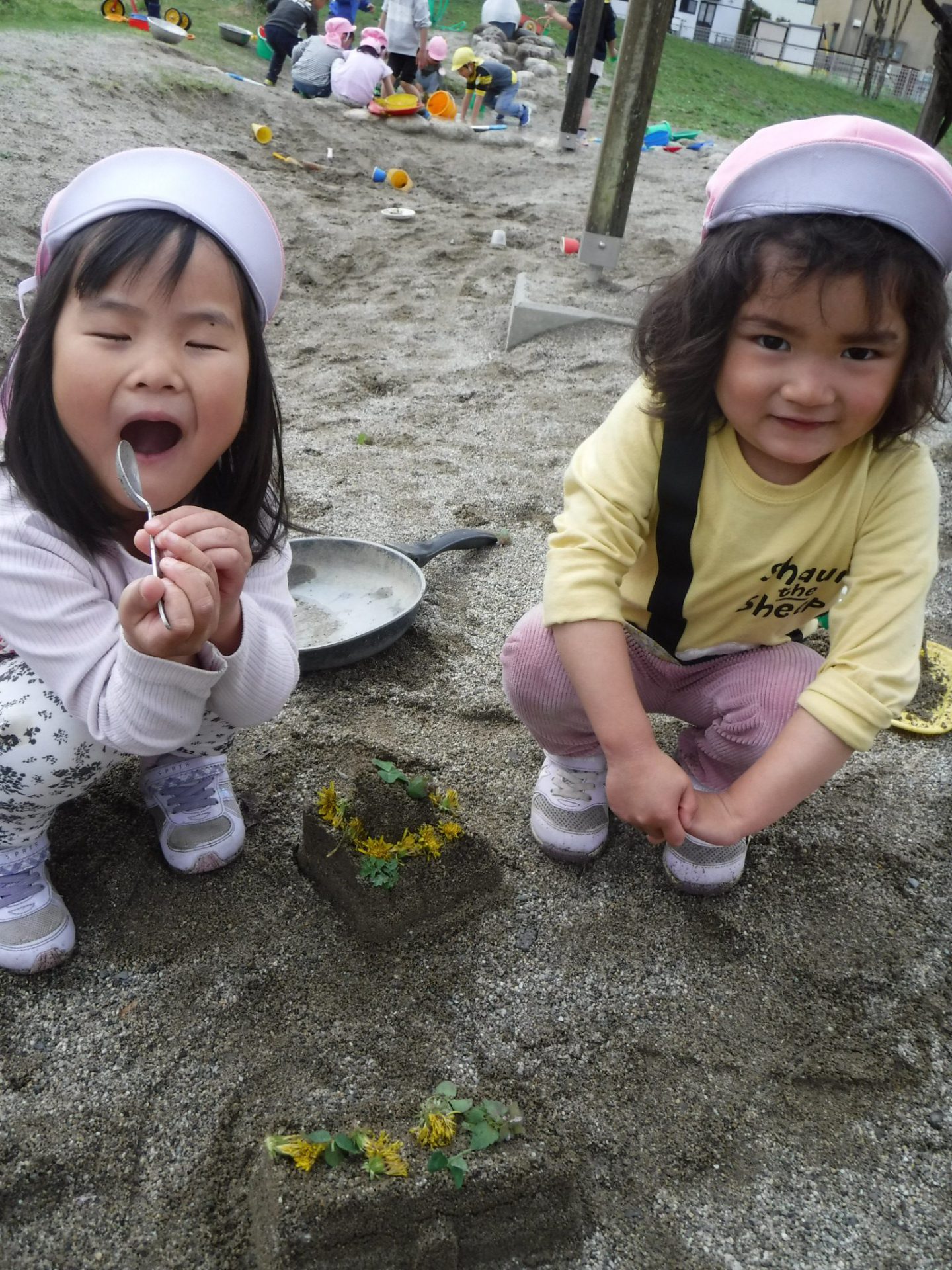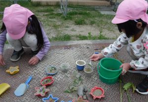 春になると園庭にお花がどんどん咲き、そのお花で色々な遊びが楽しめることに気づき始めたこども達。