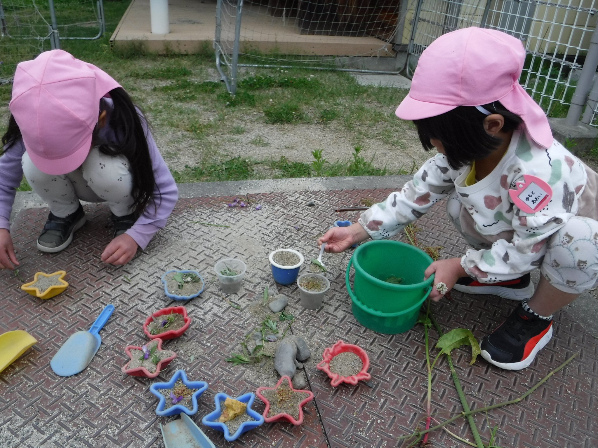 園庭にある草花を摘みケーキづくり。