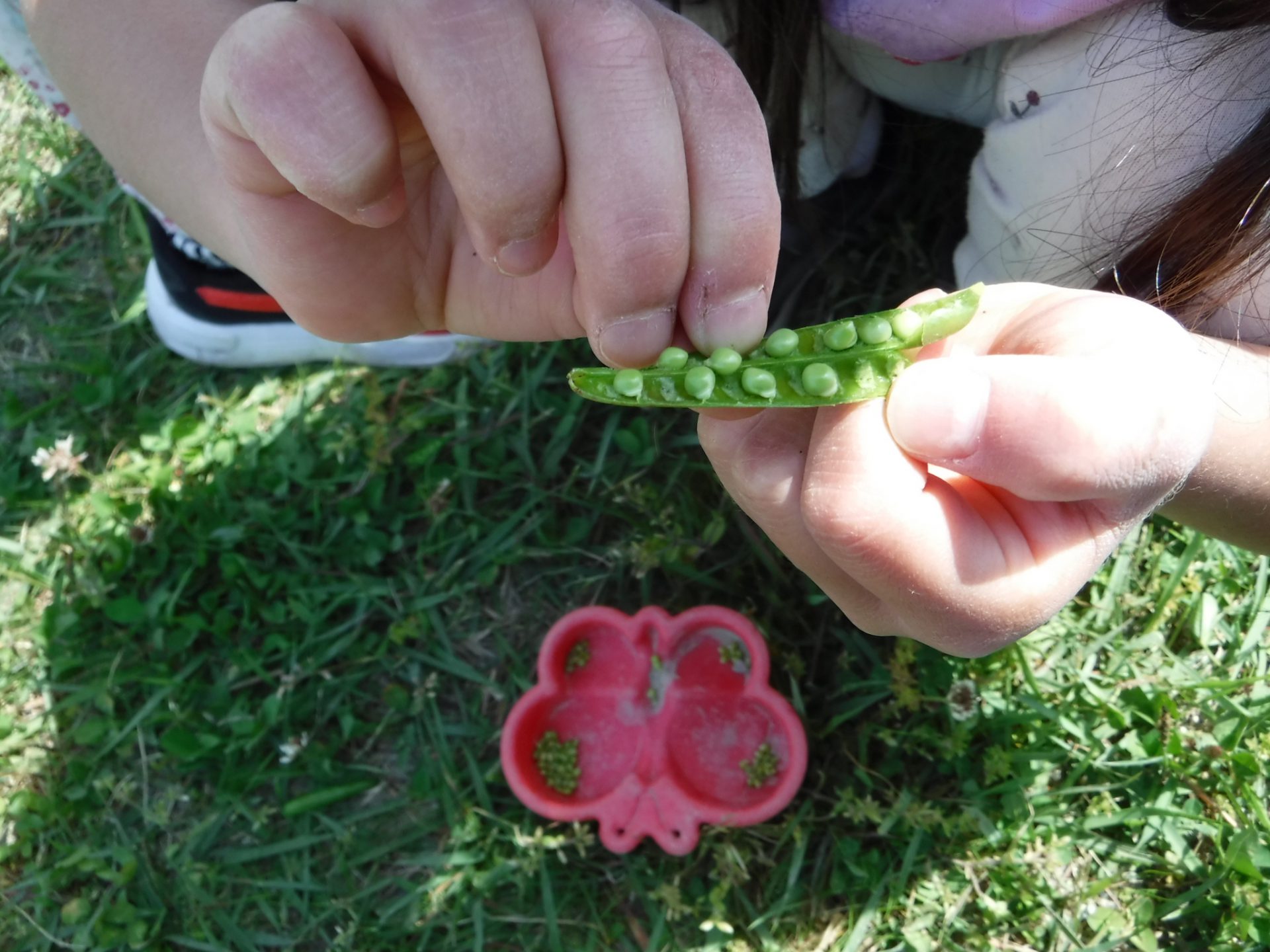 「おひさまの(陽の当たる)方に大きいお豆、たくさんあるよ!」