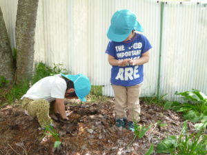 ダンゴムシを取るのが得意なお友だちの様子を見て、真似してみようとしたり、コツをつかんだりしたお友だちも