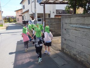 たくさん遊んだ後も頑張って保育園まで戻ります。