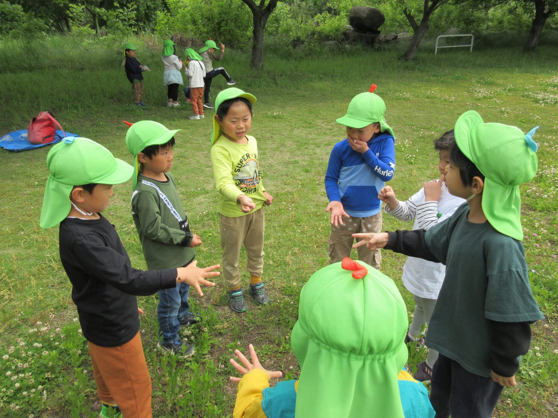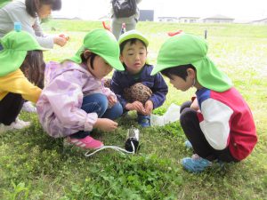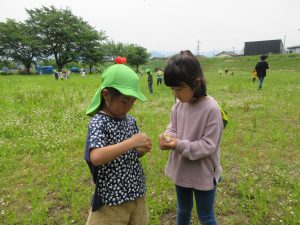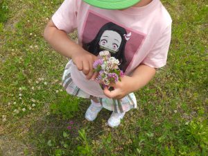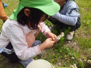 二回目の土手への散歩。土手はたくさんの草花があり「こんな遊びがあるんだ!」と楽しそうな子どもたちでした。年長になると友だちとの関わりも増え、自分の知っていることを教え合ったり不思議に思ったことを一緒に考え自分の意見を伝え合ったりする姿がたくさん見られました。自然を通してさらに子どもたちの関りが深まった気がします。