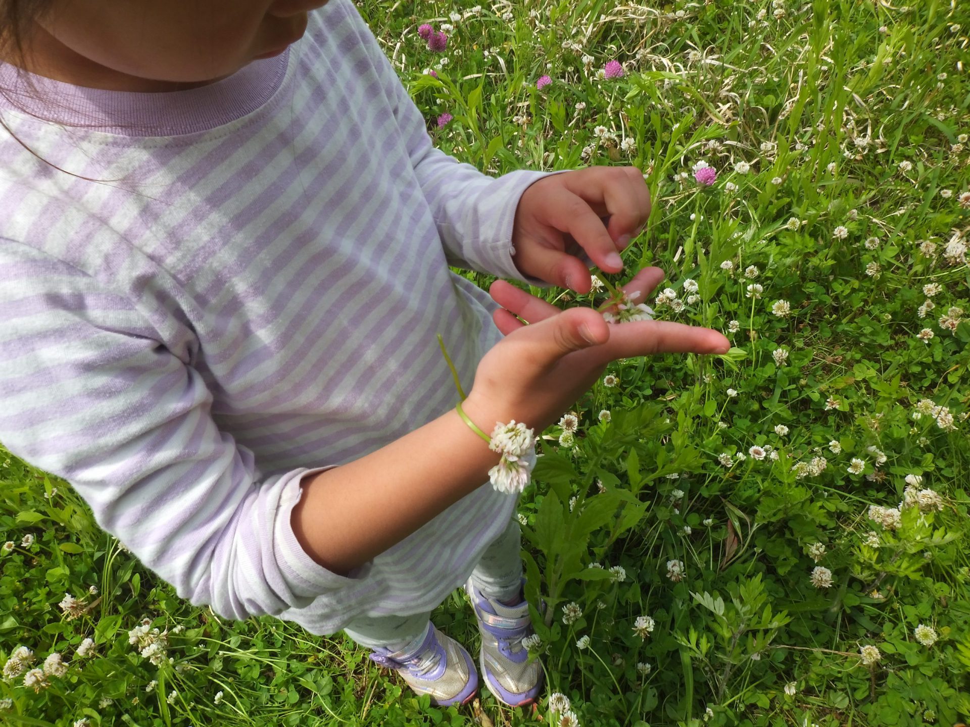 早速シロツメクサを摘んで黙々と何かを作っています・・・
