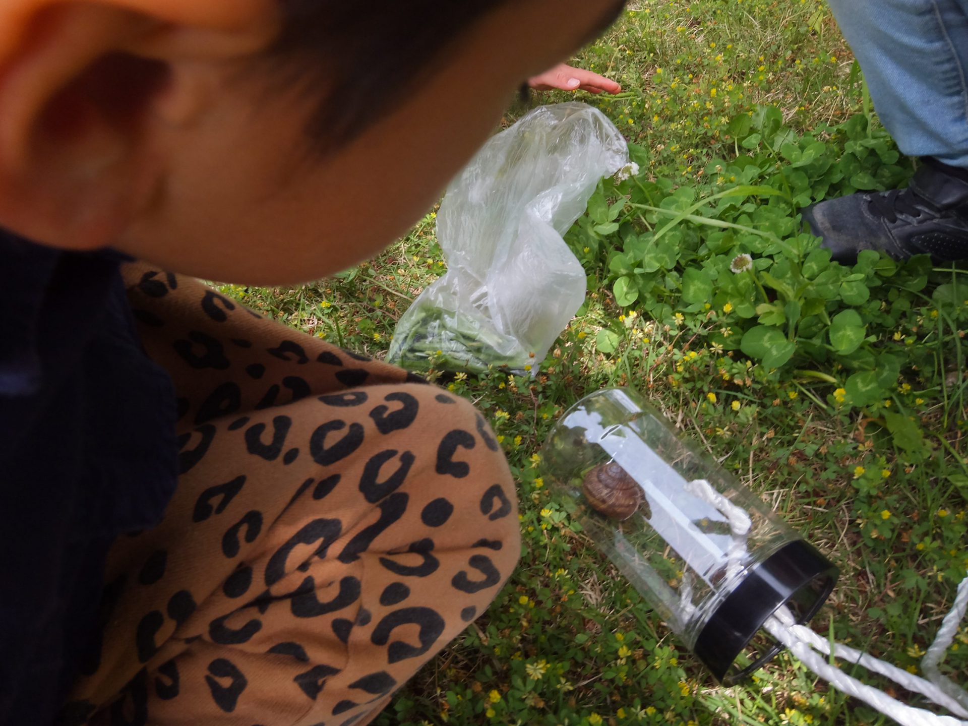 「飼いたい~!!」「かたつむりってなに食べるのかな??」と興味深々でした。