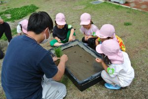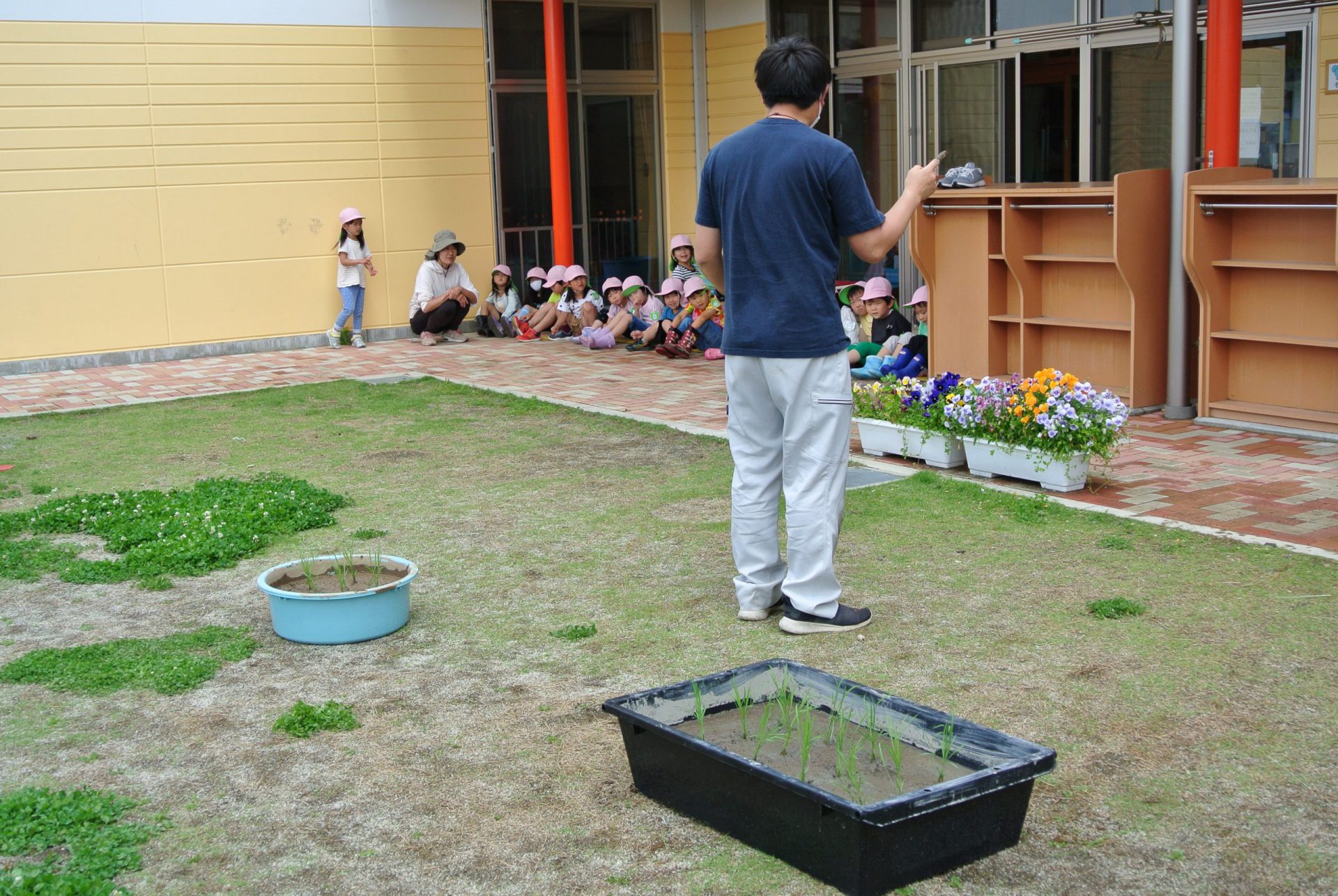 お米は知っていてもこのお米から苗が育ったことには子どもたちも驚いた様子でした。