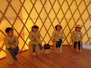 ネバーランドに到着。山にはゲルテントがあり、荷物を置かせてもらうため、中に入らせてもらいました。