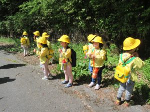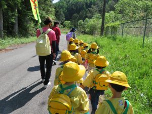 毎年行っている春の遠足。今年は、ネバーランドを目的地とし、途中までバスで行き、旧道からは歩いて向かいます。