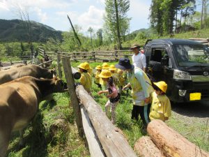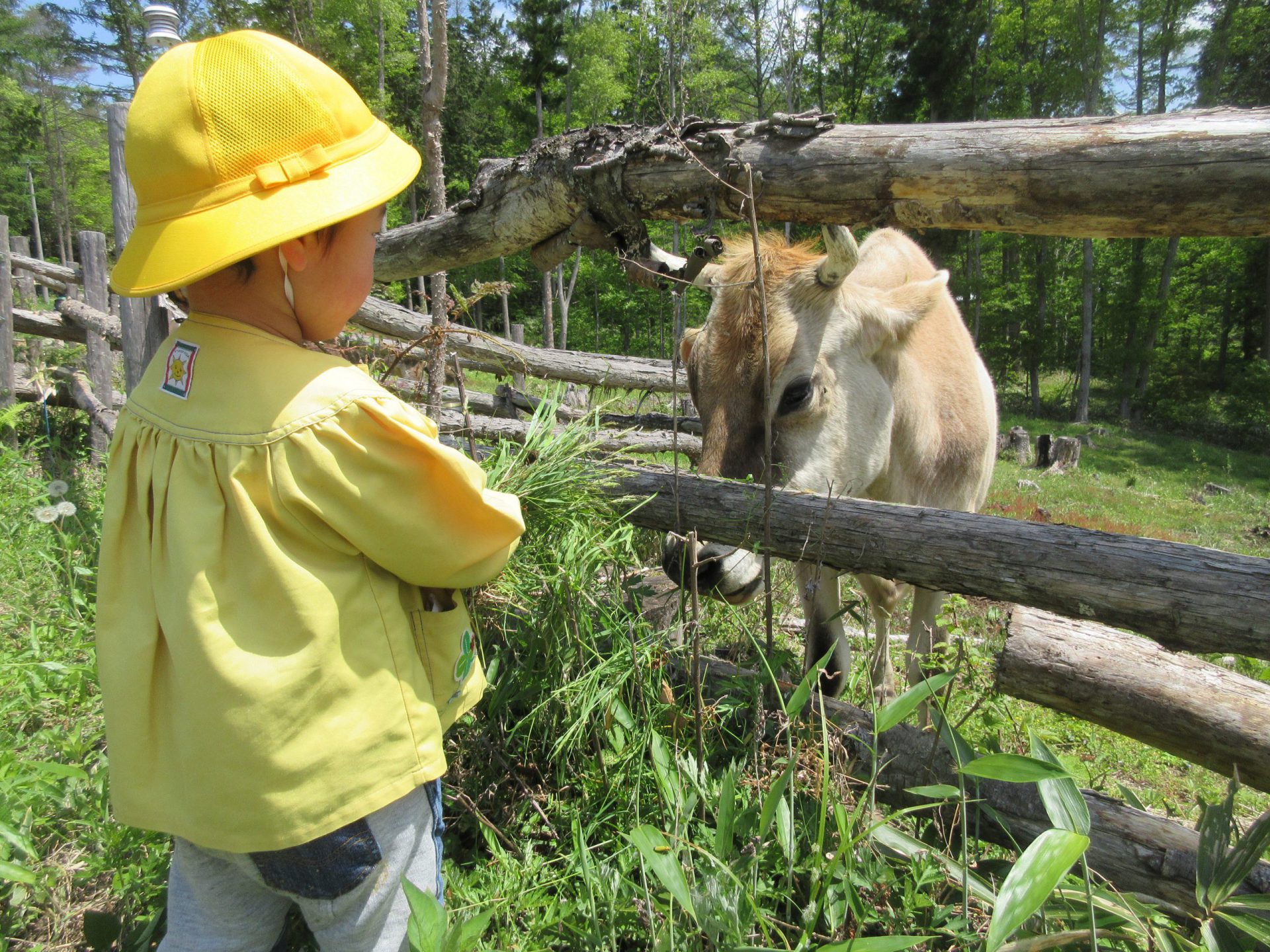 ・何度もネバーランドの山に遊びに来ていますが、今回は幸山さんにご協力を頂いたことにより、牛や鶏との触れ合いを体験することが出来ました。牛に与える草を軽トラいっぱい用意してくださったこともそうですが、保育士だけでは出来ない経験をさせて頂いたことに本当に感謝します。