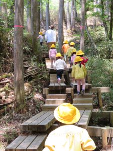 昨年の秋にも歩いたことがある遊歩道では、子どもたちは軽やかな足取りでどんどん登っていきます。