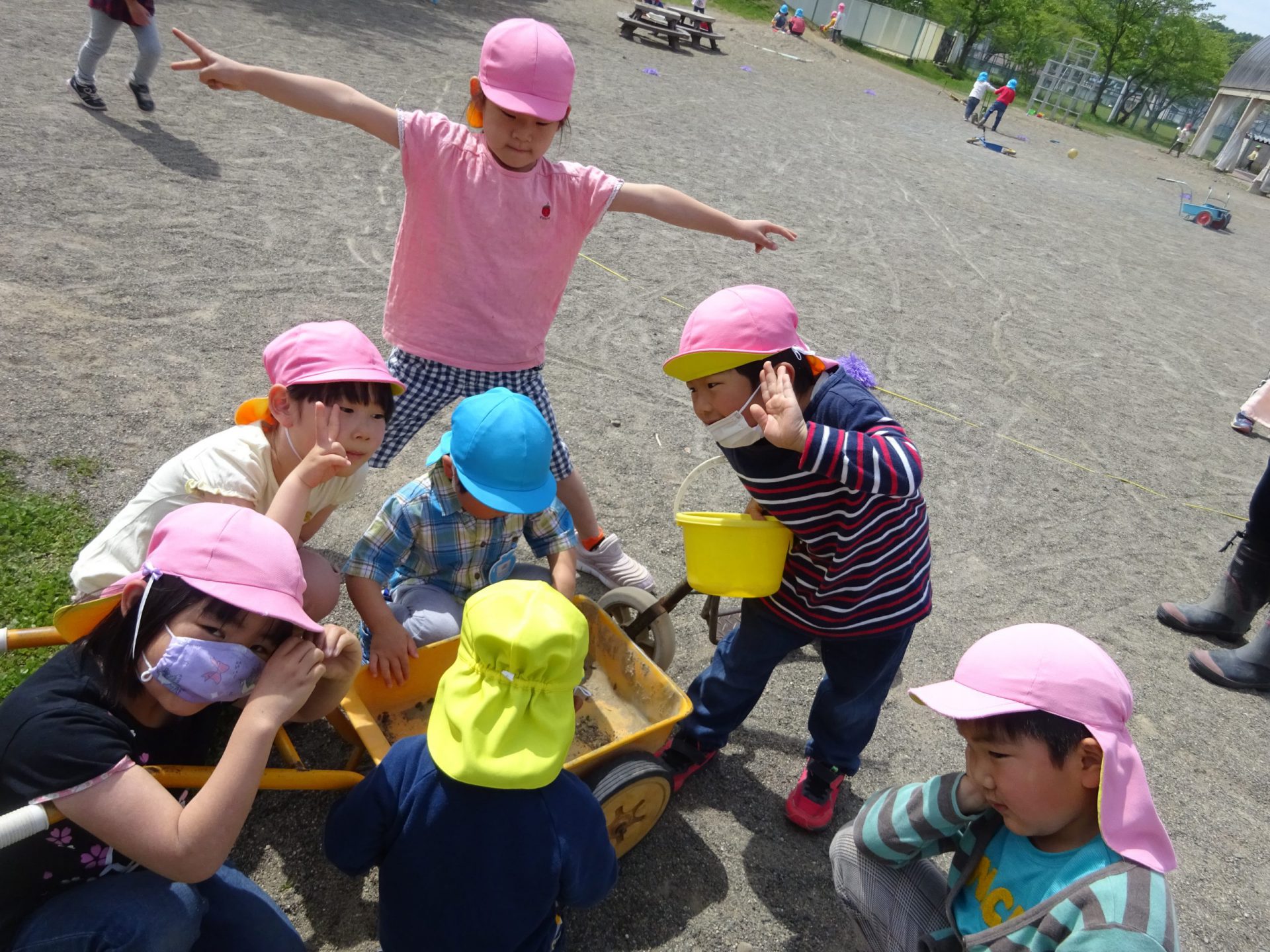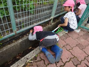 子ども達は、そんな小さな生き物たちに夢中。園庭を走りまわり、探しています。