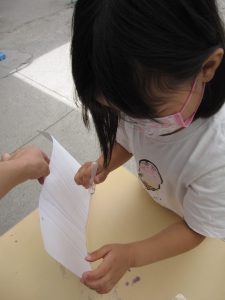 花びらと同じ色水ができるとは限らず、絵を描いた時にも別の色が現れたり・・・。なんとも不思議な経験をしたようです。