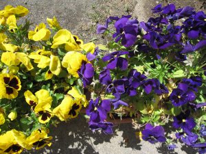 卒園式・入園式に花を添えてくれた🌸パンジー🌸。式後はクラス前のテラスに移動。