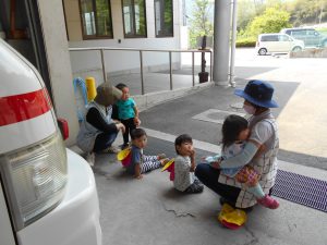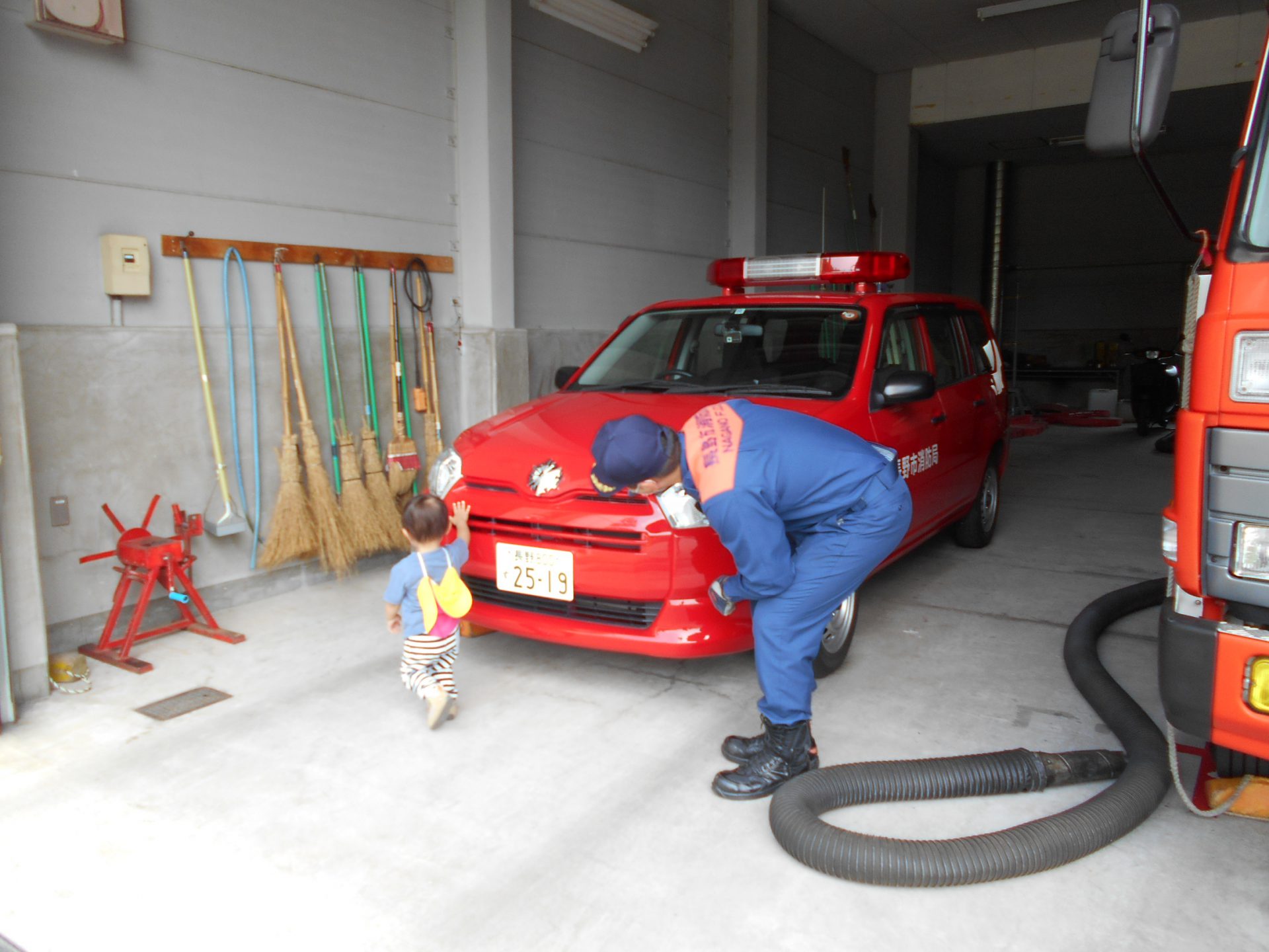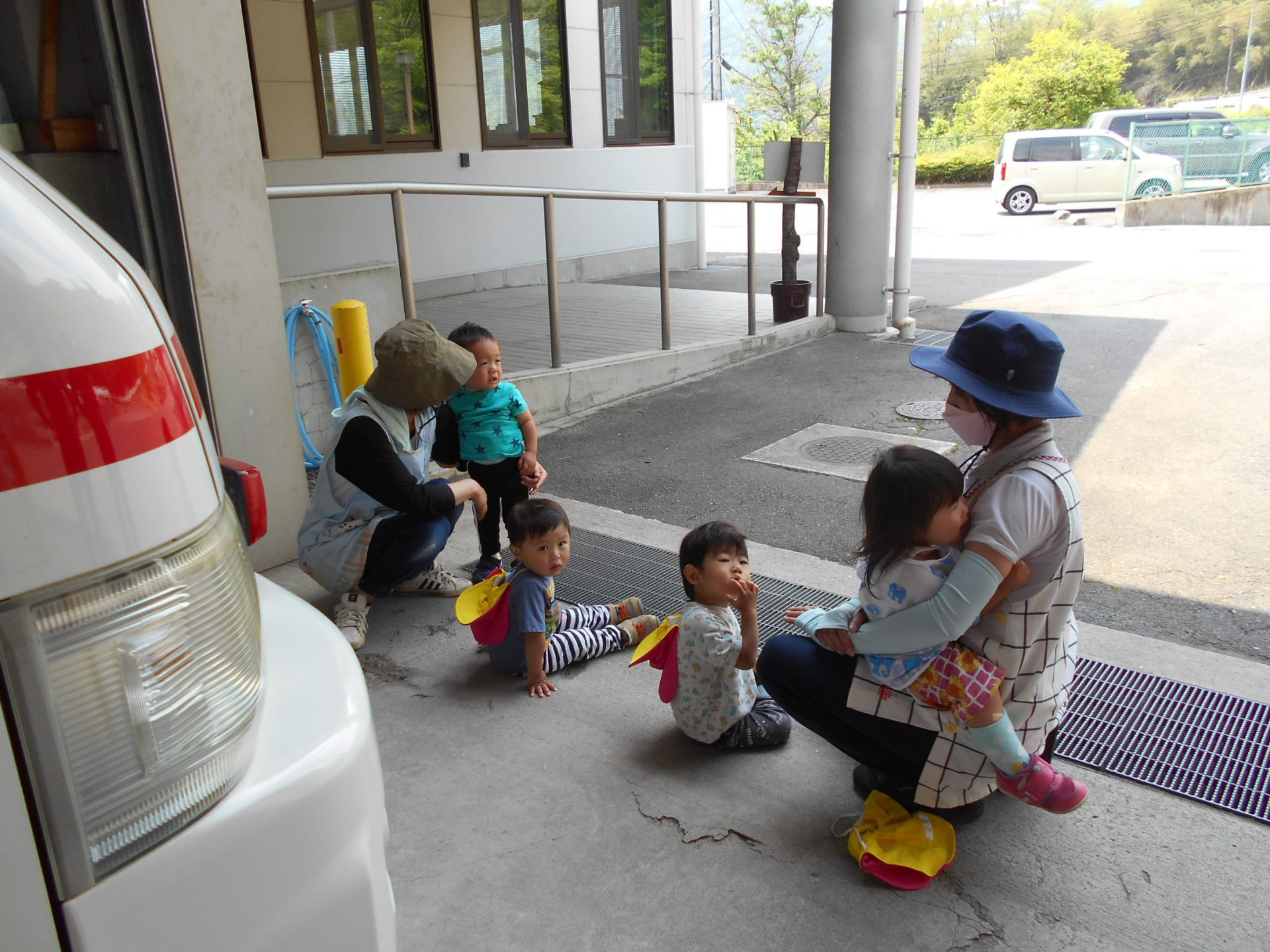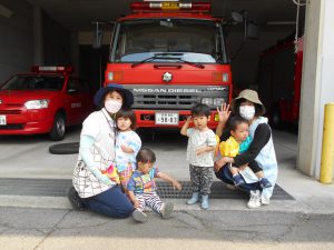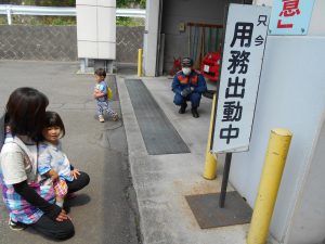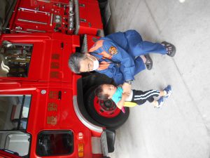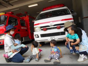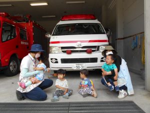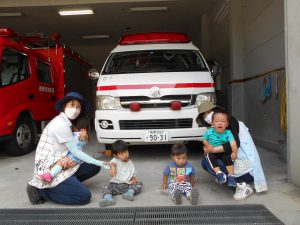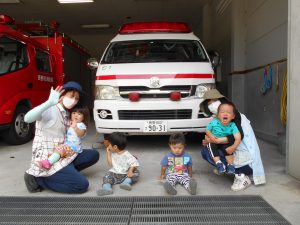 消防署に行って、消防車・救急車を見て喜ぶ。