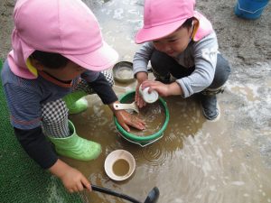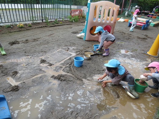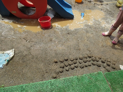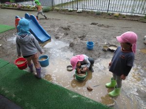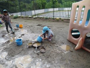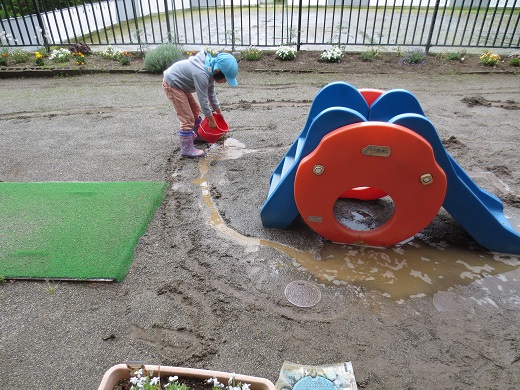 雨が降り続いた後の園庭は。お~~~(^^♪