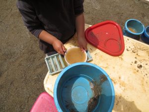 水の感触の心地よさをじっくり感じる子や泥の感触・・・・。