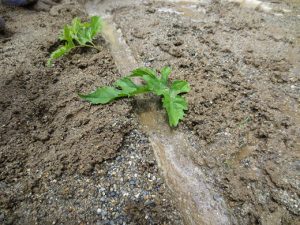掘った場所が川のように水が流れることに気が付いて、ほかの水たまりから水を汲んできては流し汲んできては流し。