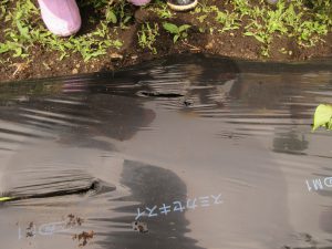 保「それじゃあ、横に寝かせながら入れようね。初めに、ビニールの穴が開いているところの土を掘ってみよう」
