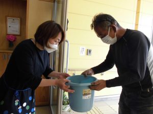 園の前の田んぼのおじさんから沢山のおたまじゃくしを頂きました。