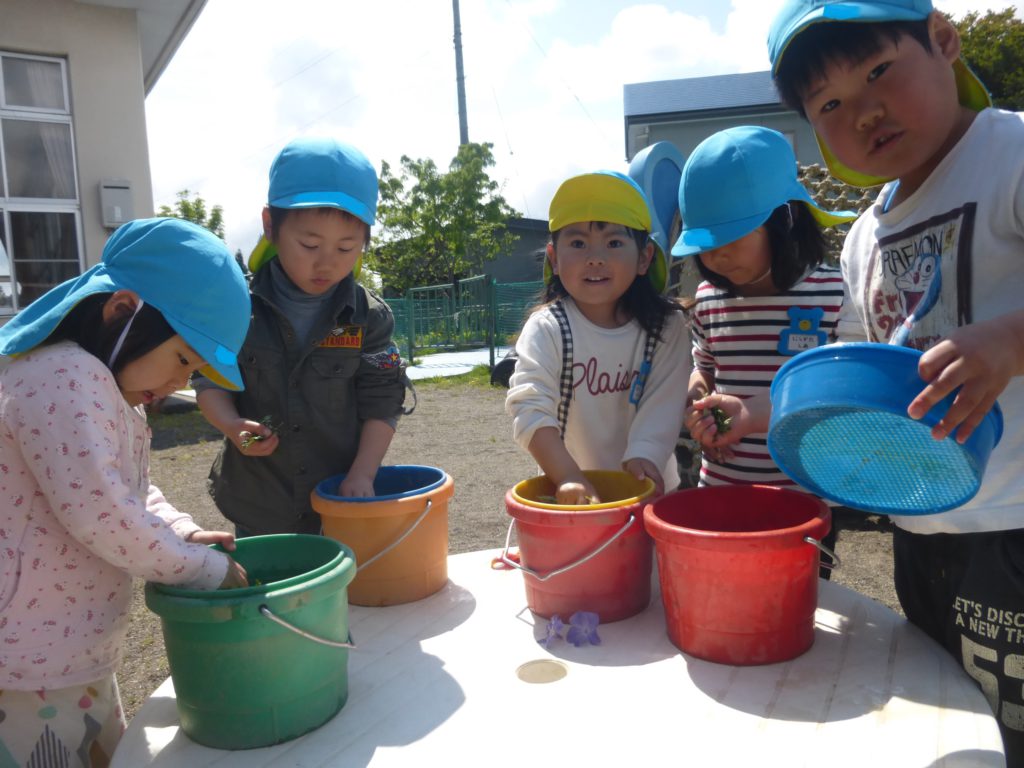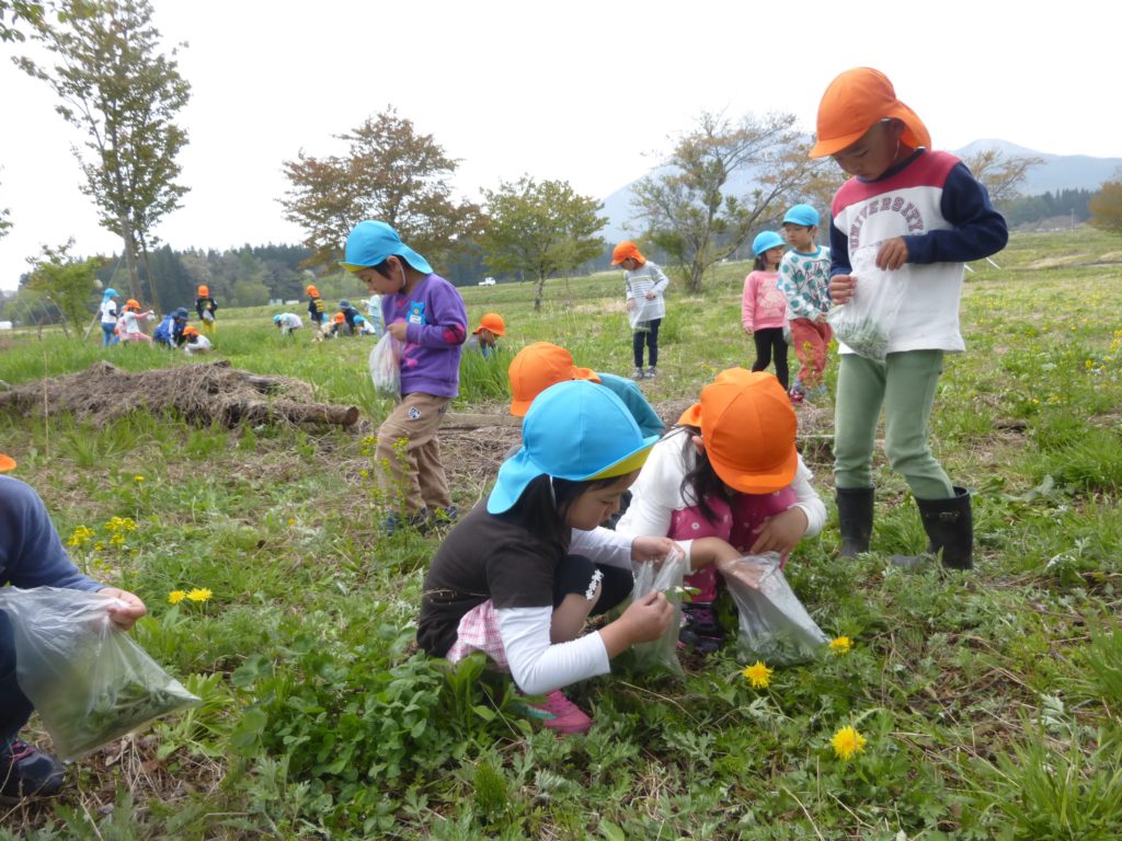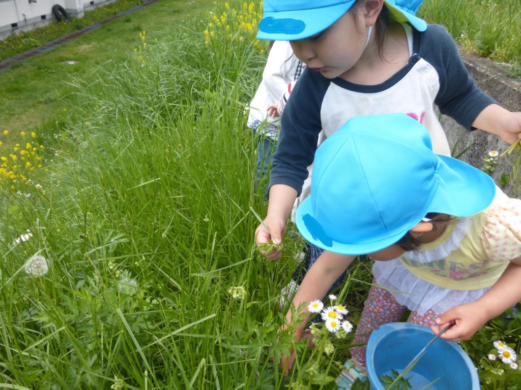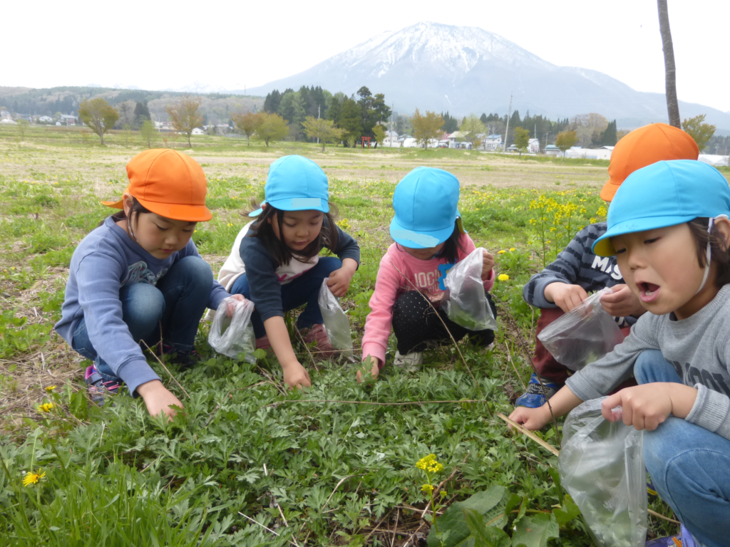 その際、メニューで頂くよもぎを5才児と散歩で採りに行ったのですが、よもぎを見つけると「これがよもぎだよ」と知っている子ども達も沢山いて驚きました。