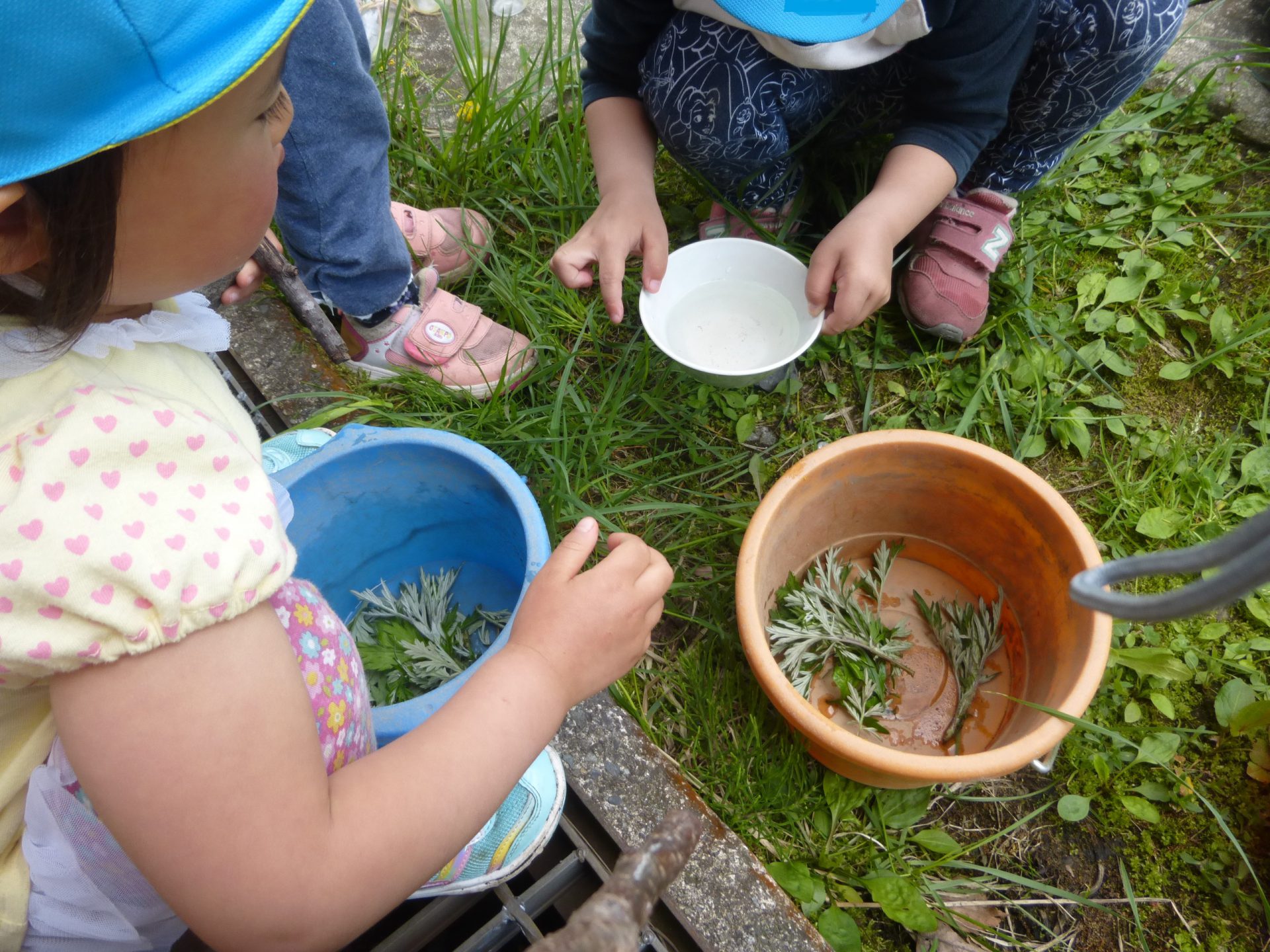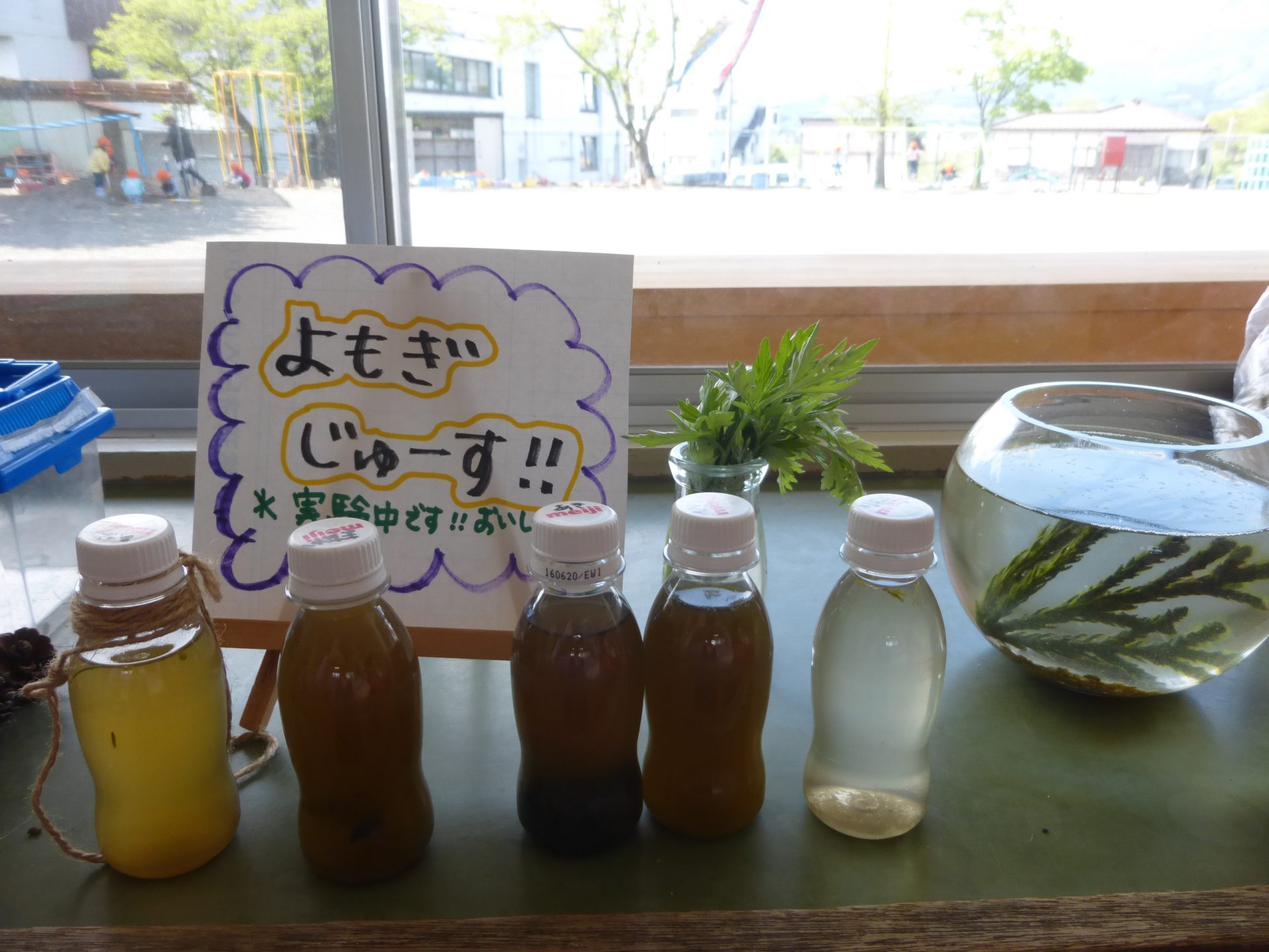 「続きは明日やろうね!!」とよもぎを水に入れていました。