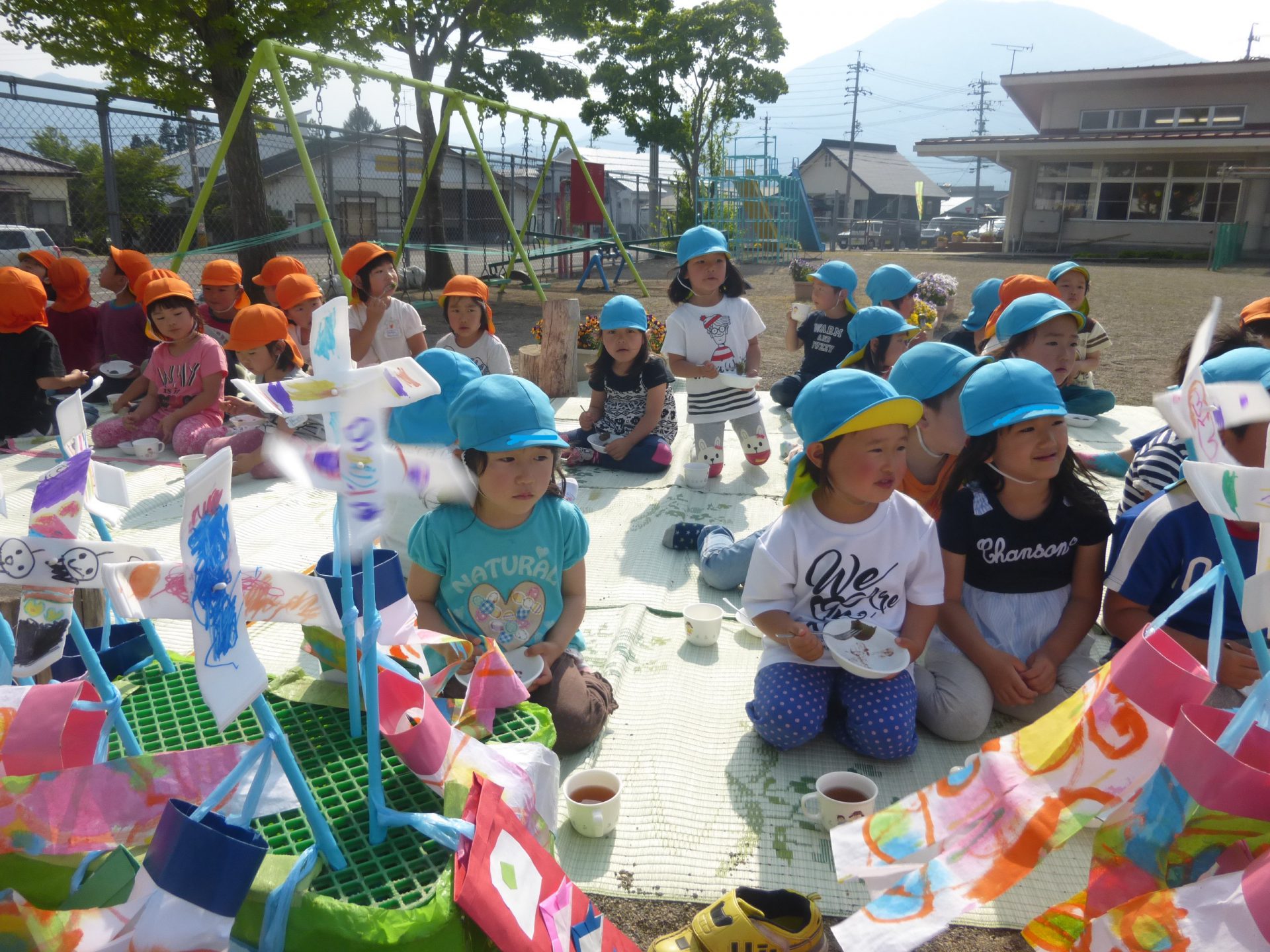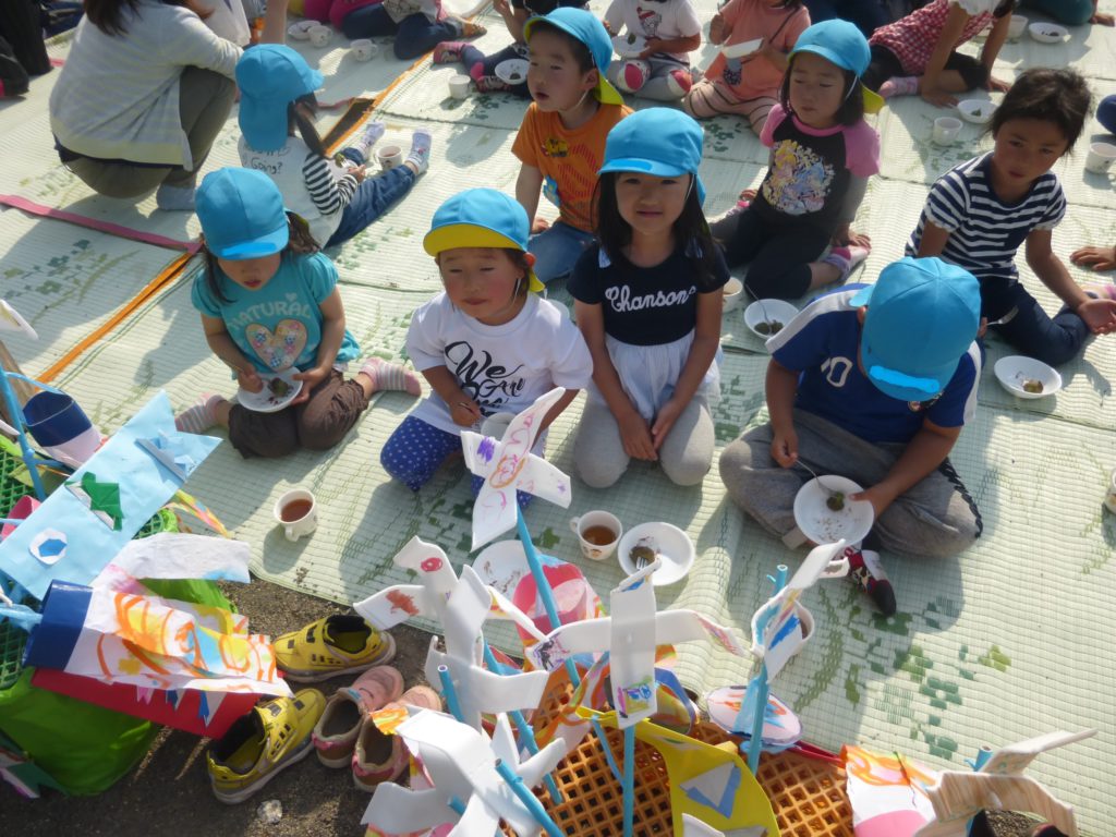 外で食べる解放感に、こいのぼりを歌う声も自然と大きくなりますね。