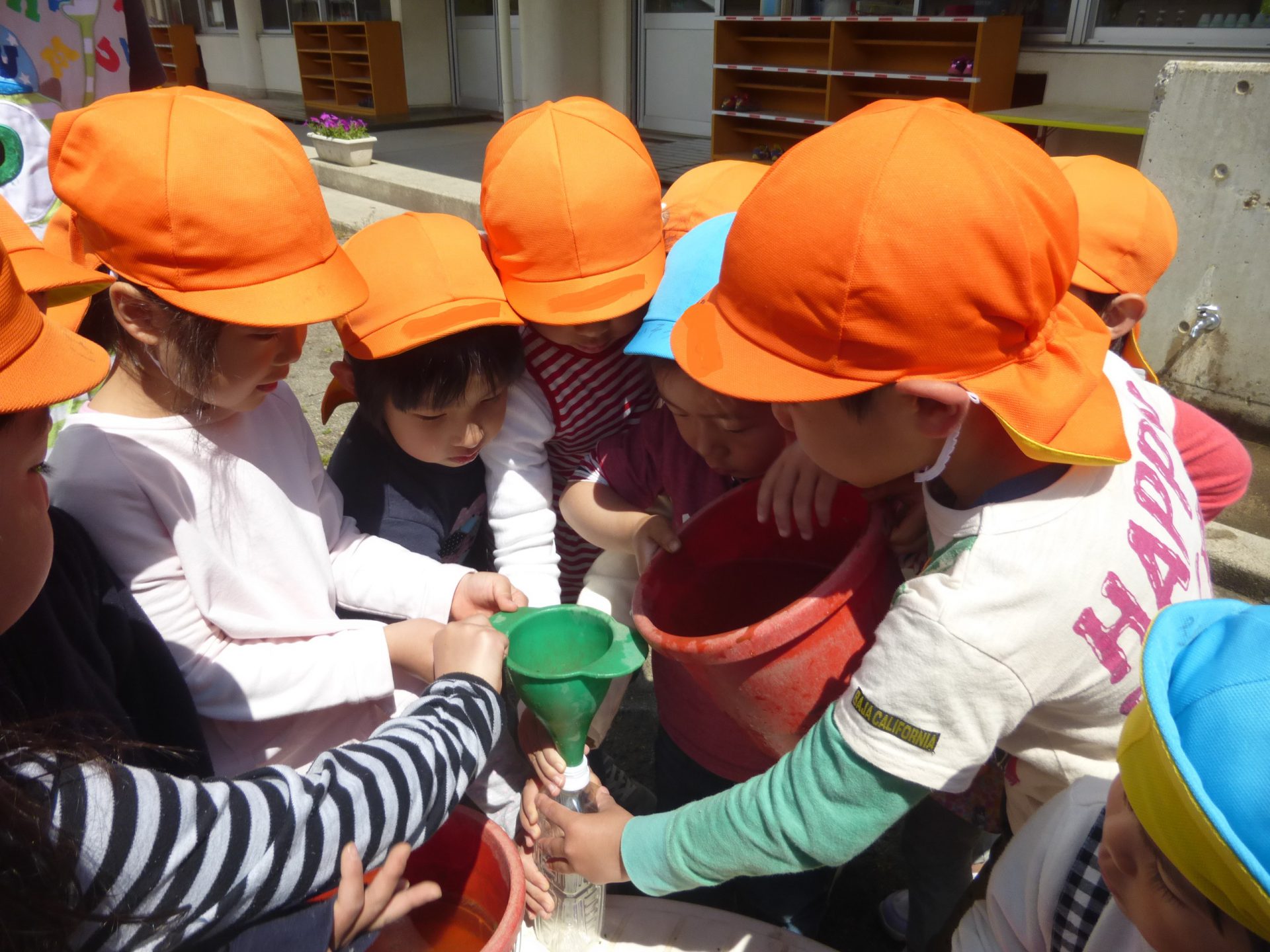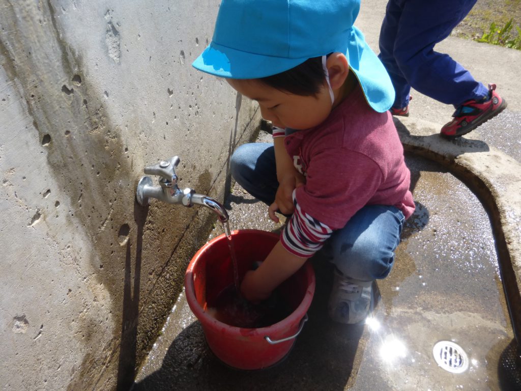 実験を始めてから色水を作るときは必ずバケツとザルを洗うようになりました。