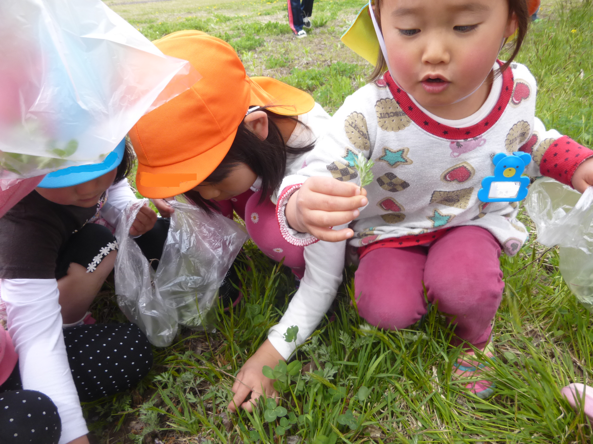 「小さいお友達が食べるから土が付かないように採ろうね」