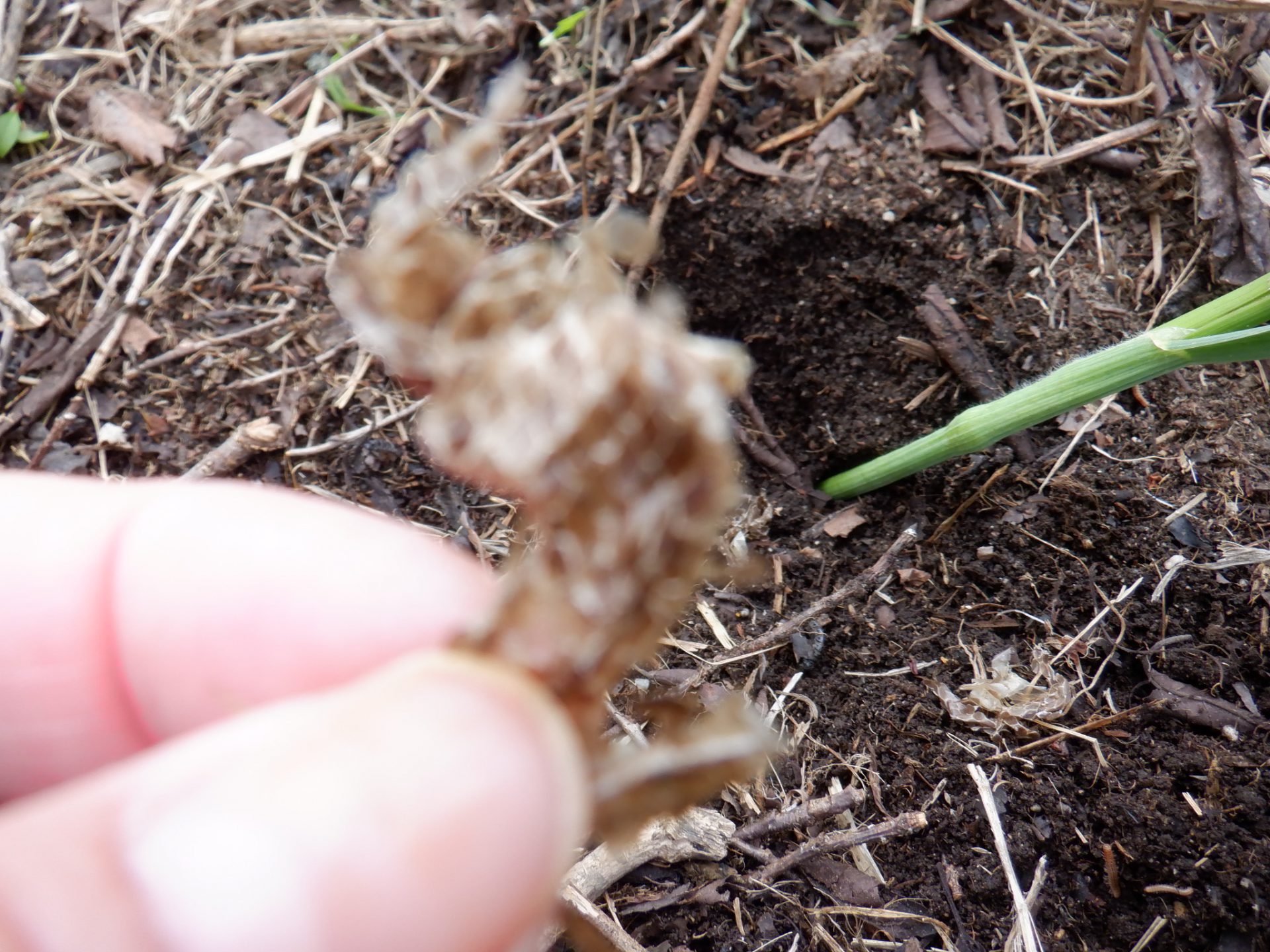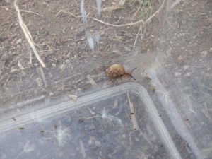 引っ張り出した木の枝の後にカタツムリを発見。