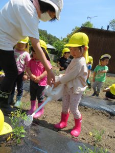 子どもたちが野菜植えの活動をするこによって、これからこの苗がどのように成長をして、実を付けていくのか知り、野菜への興味や関心が広がっていってくれたらと思います。