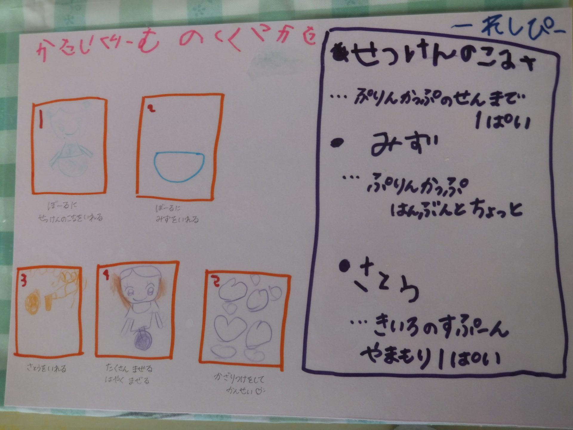 こちらは、粉の石鹼を固めて楽しんでいる様子です。