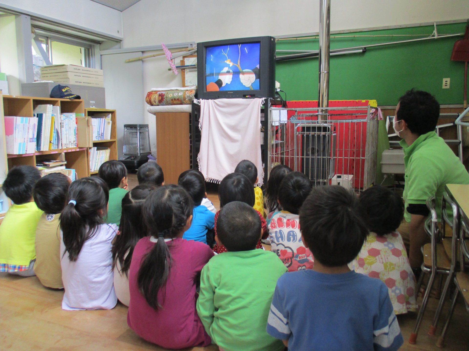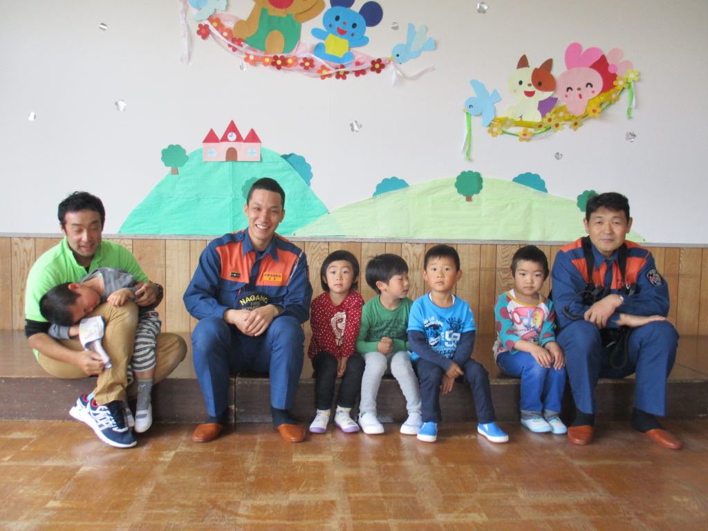 鳥居川消防署信濃町分署から消防士の方にお越しいただき、防火教室がありました。