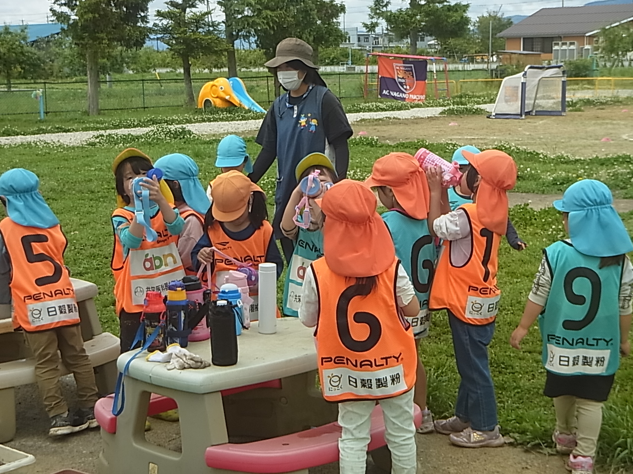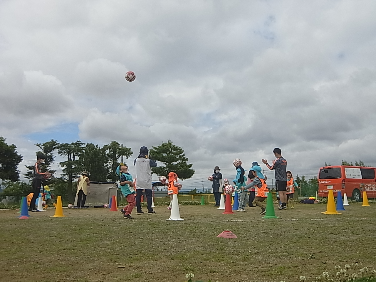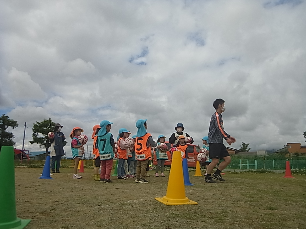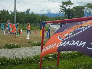 みなさん、北信地区のAC長野パルセイロをご存じですよね。毎年保育園の子ども達に足を使ったボール遊びの楽しさを伝えに来てくれます。みなさんの園にも来てくれたと思います。