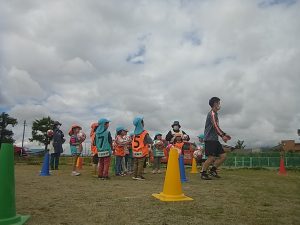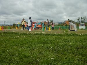 小さいクラスの子がちょっと見学。「つぎにおおきくなったらできるんだ」